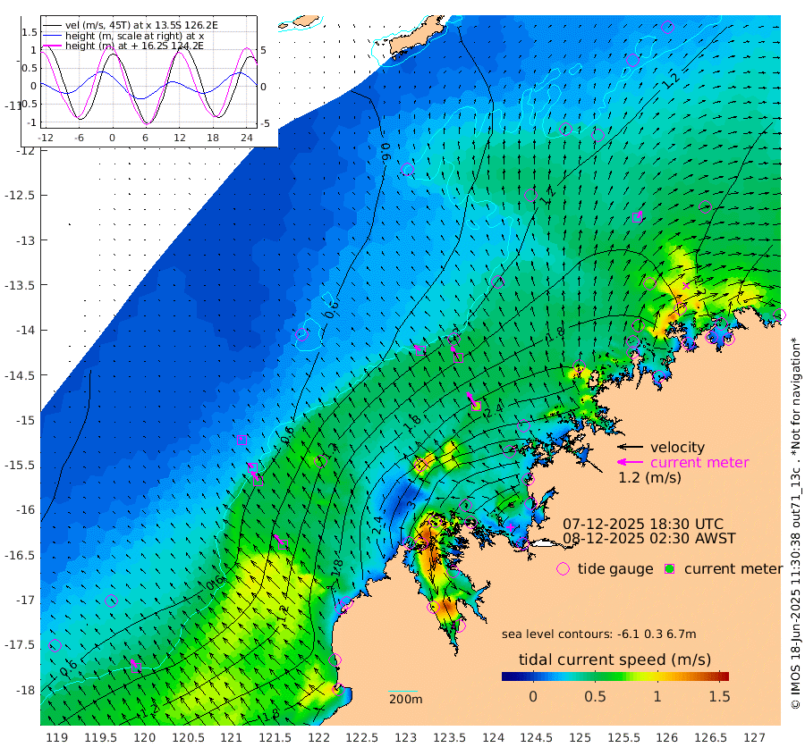 39cm/s -49T +10cm/s rms + 1cm/s 1T. NWSBRW 205m 45cm/s -35T +11cm/s rms + 6cm/s -110T. NWSROW 199m 79cm/s -31T +5cm/s rms + 2cm/s 65T. CAM050 58m 63cm/s -30T +12cm/s rms + 5cm/s 92T. CAM100 99m 14cm/s -41T +7cm/s rms + 1cm/s -85T. KIM400 396m 29cm/s -42T +9cm/s rms + 5cm/s -119T. KIM200 208m 54cm/s -36T +11cm/s rms + 5cm/s -147T. KIM100 99m 60cm/s -42T +8cm/s rms + 3cm/s -103T. KIM050 59m 37cm/s 31T +4cm/s rms + 2cm/s 23T. TIMORS88 91m 160cm Imperieuse Reef 36cm Mermaid Reef 148cm Broome 98cm Cape Baskerville 157cm Red Bluff 116cm Cape Boileau 42cm Scott Reef (WA) 86cm Ashmore Reef 307cm Karrakatta Bay 308cm Sunday Island 424cm Valentine Island 406cm Derby 407cm Port Usborne 277cm Bedford Islands 315cm Yampi Sound (Koolan Island) 324cm Macleay Island 175cm Adele Island -5cm Browse Island 431cm Shale Island 431cm Lizard Island 297cm Hall Point 239cm Degerando Island 185cm White Island 86cm Skua No. 4 Well 107cm Jabiru 136cm Maret Island 116cm Baudin Island 130cm Cape Voltaire (Krait Bay) 100cm Dillon Shoal 12cm Laminaria 166cm Port Warrender 122cm Troughton Island 120cm Cassini Island 86cm West Holothuria Reef Offshore 111cm Jar Island 97cm Lynher Bank 94cm Heywood Shoal 94cm Pee Shoal 83cm Van Cloon Shoal 59cm Carronade Island 55cm Guy Point 68cm Napier Broome Bay 20cm Lesueur Island