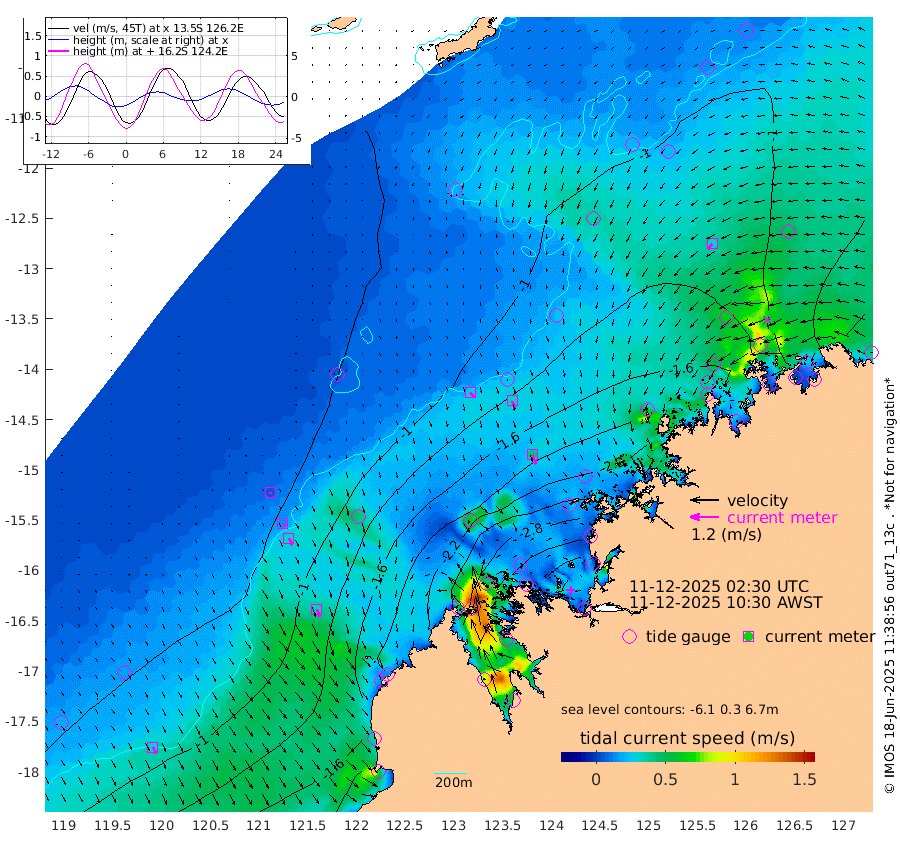27cm/s 136T +10cm/s rms + 1cm/s 1T. NWSBRW 205m 28cm/s 154T +11cm/s rms + 6cm/s -110T. NWSROW 199m 42cm/s 157T +5cm/s rms + 2cm/s 65T. CAM050 58m 34cm/s 159T +12cm/s rms + 5cm/s 92T. CAM100 99m 6cm/s 167T +7cm/s rms + 1cm/s -85T. KIM400 396m 15cm/s 147T +9cm/s rms + 5cm/s -119T. KIM200 208m 31cm/s 153T +11cm/s rms + 5cm/s -147T. KIM100 99m 34cm/s 153T +8cm/s rms + 3cm/s -103T. KIM050 59m 30cm/s -135T +4cm/s rms + 2cm/s 23T. TIMORS88 91m -122cm Imperieuse Reef -64cm Mermaid Reef -155cm Broome -110cm Cape Baskerville -151cm Red Bluff -119cm Cape Boileau -65cm Scott Reef (WA) -92cm Ashmore Reef -242cm Karrakatta Bay -254cm Sunday Island -286cm Valentine Island -251cm Derby -278cm Port Usborne -240cm Bedford Islands -267cm Yampi Sound (Koolan Island) -281cm Macleay Island -171cm Adele Island -27cm Browse Island -343cm Shale Island -369cm Lizard Island -204cm Hall Point -209cm Degerando Island -181cm White Island -93cm Skua No. 4 Well -85cm Jabiru -137cm Maret Island -120cm Baudin Island -125cm Cape Voltaire (Krait Bay) -86cm Dillon Shoal -56cm Laminaria -151cm Port Warrender -106cm Troughton Island -115cm Cassini Island -94cm West Holothuria Reef Offshore -97cm Jar Island -116cm Lynher Bank -104cm Heywood Shoal -97cm Pee Shoal -78cm Van Cloon Shoal -57cm Carronade Island -57cm Guy Point -66cm Napier Broome Bay -17cm Lesueur Island