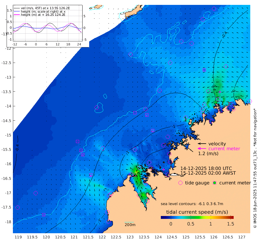 4cm/s 171T +10cm/s rms + 1cm/s 1T. NWSBRW 205m 9cm/s 161T +11cm/s rms + 6cm/s -110T. NWSROW 199m 13cm/s -180T +5cm/s rms + 2cm/s 65T. CAM050 58m 11cm/s -172T +12cm/s rms + 5cm/s 92T. CAM100 99m 3cm/s -152T +7cm/s rms + 1cm/s -85T. KIM400 396m 4cm/s -158T +9cm/s rms + 5cm/s -119T. KIM200 208m 10cm/s -170T +11cm/s rms + 5cm/s -147T. KIM100 99m 16cm/s 180T +8cm/s rms + 3cm/s -103T. KIM050 59m 10cm/s -102T +4cm/s rms + 2cm/s 23T. TIMORS88 91m -54cm Imperieuse Reef -50cm Mermaid Reef -98cm Broome -76cm Cape Baskerville -79cm Red Bluff -65cm Cape Boileau -50cm Scott Reef (WA) -56cm Ashmore Reef -123cm Karrakatta Bay -139cm Sunday Island -133cm Valentine Island -117cm Derby -137cm Port Usborne -143cm Bedford Islands -147cm Yampi Sound (Koolan Island) -187cm Macleay Island -114cm Adele Island -29cm Browse Island -172cm Shale Island -143cm Lizard Island -67cm Hall Point -113cm Degerando Island -104cm White Island -61cm Skua No. 4 Well -46cm Jabiru -84cm Maret Island -75cm Baudin Island -69cm Cape Voltaire (Krait Bay) -58cm Dillon Shoal -52cm Laminaria -77cm Port Warrender -51cm Troughton Island -67cm Cassini Island -54cm West Holothuria Reef Offshore -35cm Jar Island -71cm Lynher Bank -71cm Heywood Shoal -57cm Pee Shoal -24cm Van Cloon Shoal -10cm Carronade Island -19cm Guy Point -1cm Napier Broome Bay 30cm Lesueur Island
