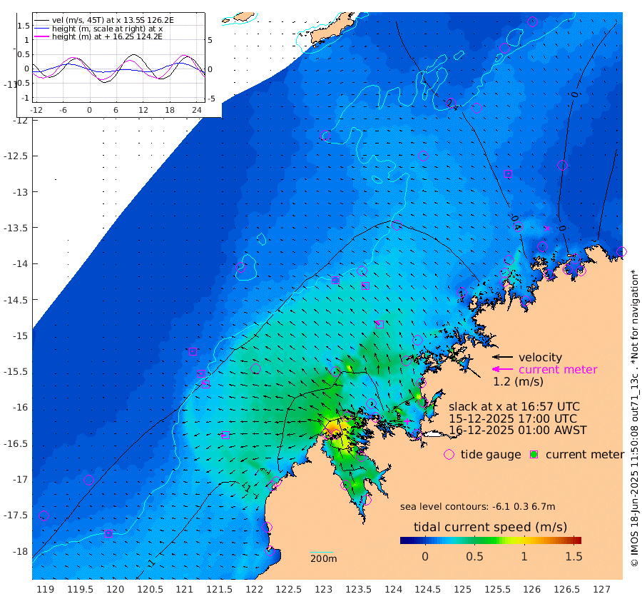 10cm/s -70T +10cm/s rms + 1cm/s 1T. NWSBRW 205m 10cm/s -63T +11cm/s rms + 6cm/s -110T. NWSROW 199m 29cm/s -49T +5cm/s rms + 2cm/s 65T. CAM050 58m 21cm/s -54T +12cm/s rms + 5cm/s 92T. CAM100 99m 7cm/s -86T +7cm/s rms + 1cm/s -85T. KIM400 396m 12cm/s -76T +9cm/s rms + 5cm/s -119T. KIM200 208m 20cm/s -69T +11cm/s rms + 5cm/s -147T. KIM100 99m 26cm/s -103T +8cm/s rms + 3cm/s -103T. KIM050 59m 5cm/s -21T +4cm/s rms + 2cm/s 23T. TIMORS88 91m -18cm Imperieuse Reef -72cm Mermaid Reef -133cm Broome -105cm Cape Baskerville -97cm Red Bluff -89cm Cape Boileau -64cm Scott Reef (WA) -58cm Ashmore Reef -75cm Karrakatta Bay -69cm Sunday Island 41cm Valentine Island 88cm Derby 25cm Port Usborne -99cm Bedford Islands -121cm Yampi Sound (Koolan Island) -156cm Macleay Island -110cm Adele Island -77cm Browse Island -123cm Shale Island -96cm Lizard Island -88cm Hall Point -106cm Degerando Island -124cm White Island -65cm Skua No. 4 Well -37cm Jabiru -101cm Maret Island -102cm Baudin Island -86cm Cape Voltaire (Krait Bay) -45cm Dillon Shoal -66cm Laminaria -86cm Port Warrender -47cm Troughton Island -81cm Cassini Island -69cm West Holothuria Reef Offshore -43cm Jar Island -80cm Lynher Bank -92cm Heywood Shoal -47cm Pee Shoal -18cm Van Cloon Shoal -20cm Carronade Island -31cm Guy Point -12cm Napier Broome Bay 31cm Lesueur Island