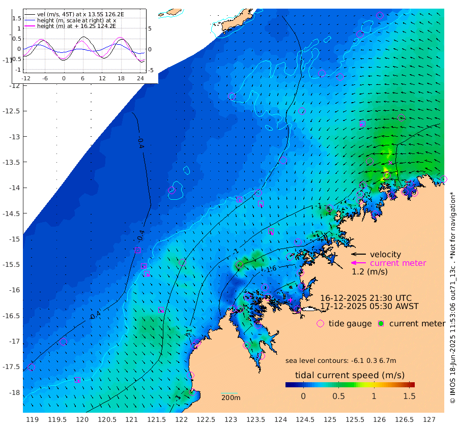 17cm/s 142T +10cm/s rms + 1cm/s 1T. NWSBRW 205m 19cm/s 149T +11cm/s rms + 6cm/s -110T. NWSROW 199m 37cm/s 157T +5cm/s rms + 2cm/s 65T. CAM050 58m 27cm/s 160T +12cm/s rms + 5cm/s 92T. CAM100 99m 5cm/s 147T +7cm/s rms + 1cm/s -85T. KIM400 396m 12cm/s 142T +9cm/s rms + 5cm/s -119T. KIM200 208m 23cm/s 149T +11cm/s rms + 5cm/s -147T. KIM100 99m 27cm/s 138T +8cm/s rms + 3cm/s -103T. KIM050 59m 22cm/s -117T +4cm/s rms + 2cm/s 23T. TIMORS88 91m -84cm Imperieuse Reef -38cm Mermaid Reef -70cm Broome -62cm Cape Baskerville -87cm Red Bluff -58cm Cape Boileau -39cm Scott Reef (WA) -66cm Ashmore Reef -150cm Karrakatta Bay -168cm Sunday Island -218cm Valentine Island -220cm Derby -204cm Port Usborne -154cm Bedford Islands -146cm Yampi Sound (Koolan Island) -152cm Macleay Island -98cm Adele Island 6cm Browse Island -183cm Shale Island -151cm Lizard Island -158cm Hall Point -116cm Degerando Island -86cm White Island -60cm Skua No. 4 Well -83cm Jabiru -80cm Maret Island -75cm Baudin Island -70cm Cape Voltaire (Krait Bay) -75cm Dillon Shoal -46cm Laminaria -91cm Port Warrender -81cm Troughton Island -74cm Cassini Island -63cm West Holothuria Reef Offshore -64cm Jar Island -64cm Lynher Bank -63cm Heywood Shoal -74cm Pee Shoal -64cm Van Cloon Shoal -48cm Carronade Island -52cm Guy Point -46cm Napier Broome Bay -47cm Lesueur Island