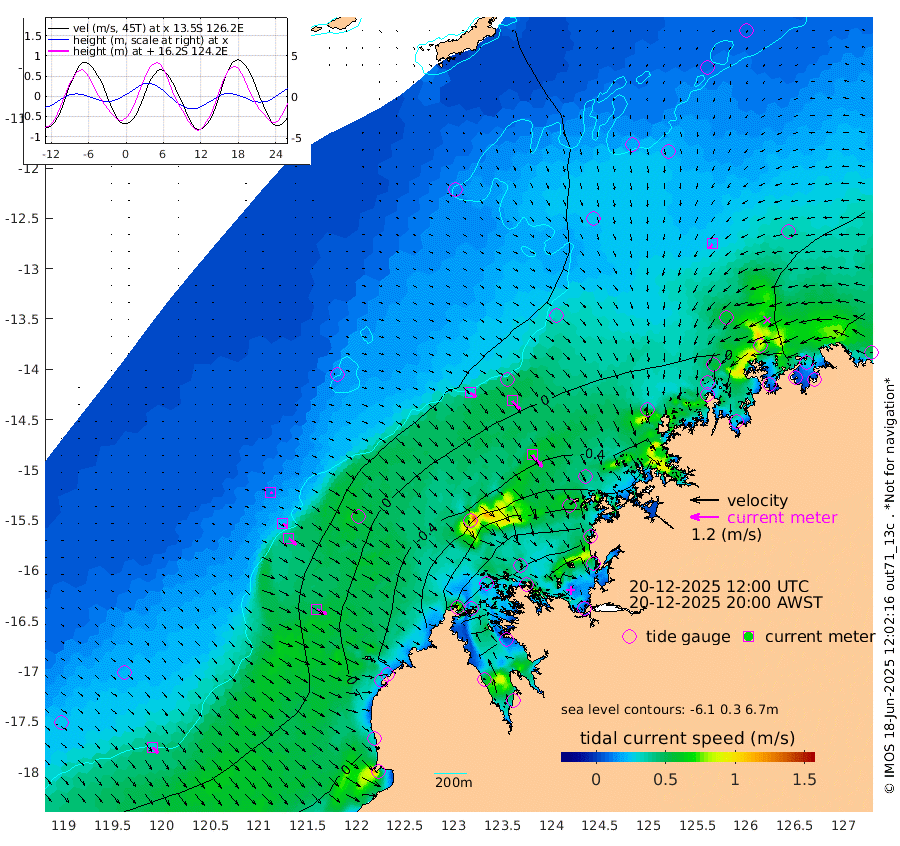 31cm/s 125T +10cm/s rms + 1cm/s 1T. NWSBRW 205m 32cm/s 140T +11cm/s rms + 6cm/s -110T. NWSROW 199m 67cm/s 141T +5cm/s rms + 2cm/s 65T. CAM050 58m 52cm/s 138T +12cm/s rms + 5cm/s 92T. CAM100 99m 10cm/s 123T +7cm/s rms + 1cm/s -85T. KIM400 396m 22cm/s 125T +9cm/s rms + 5cm/s -119T. KIM200 208m 41cm/s 131T +11cm/s rms + 5cm/s -147T. KIM100 99m 47cm/s 115T +8cm/s rms + 3cm/s -103T. KIM050 59m 23cm/s -142T +4cm/s rms + 2cm/s 23T. TIMORS88 91m -28cm Imperieuse Reef 59cm Mermaid Reef 32cm Broome 44cm Cape Baskerville -18cm Red Bluff 38cm Cape Boileau 56cm Scott Reef (WA) 47cm Ashmore Reef -97cm Karrakatta Bay -118cm Sunday Island -237cm Valentine Island -257cm Derby -222cm Port Usborne -77cm Bedford Islands -81cm Yampi Sound (Koolan Island) -76cm Macleay Island -3cm Adele Island 93cm Browse Island -148cm Shale Island -130cm Lizard Island -128cm Hall Point -33cm Degerando Island 0cm White Island 57cm Skua No. 4 Well 32cm Jabiru 46cm Maret Island 53cm Baudin Island 51cm Cape Voltaire (Krait Bay) 31cm Dillon Shoal 79cm Laminaria 31cm Port Warrender 72cm Troughton Island 65cm Cassini Island 66cm West Holothuria Reef Offshore 61cm Jar Island 33cm Lynher Bank 60cm Heywood Shoal 51cm Pee Shoal 62cm Van Cloon Shoal 90cm Carronade Island 96cm Guy Point 95cm Napier Broome Bay 127cm Lesueur Island