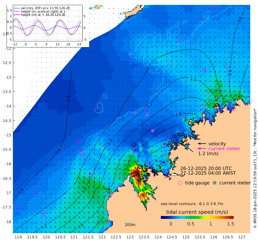 18cm/s -41T +10cm/s rms + 1cm/s 1T. NWSBRW 205m 21cm/s -24T +11cm/s rms + 6cm/s -110T. NWSROW 199m 24cm/s -29T +5cm/s rms + 2cm/s 65T. CAM050 58m 22cm/s -22T +12cm/s rms + 5cm/s 92T. CAM100 99m 6cm/s -9T +7cm/s rms + 1cm/s -85T. KIM400 396m 10cm/s -19T +9cm/s rms + 5cm/s -119T. KIM200 208m 21cm/s -19T +11cm/s rms + 5cm/s -147T. KIM100 99m 30cm/s -9T +8cm/s rms + 3cm/s -103T. KIM050 59m 20cm/s 32T +4cm/s rms + 2cm/s 23T. TIMORS88 91m 107cm Imperieuse Reef 66cm Mermaid Reef 197cm Broome 133cm Cape Baskerville 180cm Red Bluff 146cm Cape Boileau 64cm Scott Reef (WA) 85cm Ashmore Reef 237cm Karrakatta Bay 217cm Sunday Island 180cm Valentine Island 124cm Derby 192cm Port Usborne 228cm Bedford Islands 281cm Yampi Sound (Koolan Island) 294cm Macleay Island 176cm Adele Island 56cm Browse Island 360cm Shale Island 373cm Lizard Island 221cm Hall Point 229cm Degerando Island 204cm White Island 94cm Skua No. 4 Well 68cm Jabiru 156cm Maret Island 134cm Baudin Island 146cm Cape Voltaire (Krait Bay) 76cm Dillon Shoal 35cm Laminaria 161cm Port Warrender 95cm Troughton Island 132cm Cassini Island 91cm West Holothuria Reef Offshore 96cm Jar Island 111cm Lynher Bank 126cm Heywood Shoal 80cm Pee Shoal 55cm Van Cloon Shoal 44cm Carronade Island 43cm Guy Point 53cm Napier Broome Bay -34cm Lesueur Island