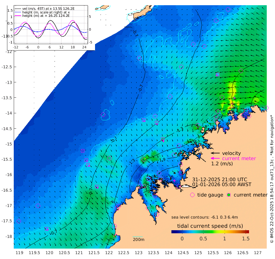 19cm/s 143T +10cm/s rms + 1cm/s 1T. NWSBRW 205m 22cm/s 147T +11cm/s rms + 6cm/s -110T. NWSROW 199m 41cm/s 160T +5cm/s rms + 2cm/s 65T. CAM050 58m 31cm/s 163T +12cm/s rms + 5cm/s 92T. CAM100 99m 6cm/s 149T +7cm/s rms + 1cm/s -85T. KIM400 396m 14cm/s 143T +9cm/s rms + 5cm/s -119T. KIM200 208m 28cm/s 152T +11cm/s rms + 5cm/s -147T. KIM100 99m 31cm/s 141T +8cm/s rms + 3cm/s -103T. KIM050 59m 28cm/s -117T +4cm/s rms + 2cm/s 23T. TIMORS88 91m -106cm Imperieuse Reef -48cm Mermaid Reef -88cm Broome -77cm Cape Baskerville -120cm Red Bluff -72cm Cape Boileau -50cm Scott Reef (WA) -90cm Ashmore Reef -189cm Karrakatta Bay -189cm Sunday Island -275cm Valentine Island -267cm Derby -247cm Port Usborne -170cm Bedford Islands -176cm Yampi Sound (Koolan Island) -197cm Macleay Island -126cm Adele Island 1cm Browse Island -230cm Shale Island -198cm Lizard Island -224cm Hall Point -137cm Degerando Island -102cm White Island -88cm Skua No. 4 Well -114cm Jabiru -104cm Maret Island -92cm Baudin Island -91cm Cape Voltaire (Krait Bay) -103cm Dillon Shoal -65cm Laminaria -107cm Port Warrender -108cm Troughton Island -104cm Cassini Island -85cm West Holothuria Reef Offshore -83cm Jar Island -70cm Lynher Bank -86cm Heywood Shoal -104cm Pee Shoal -84cm Van Cloon Shoal -59cm Carronade Island -61cm Guy Point -60cm Napier Broome Bay -45cm Lesueur Island