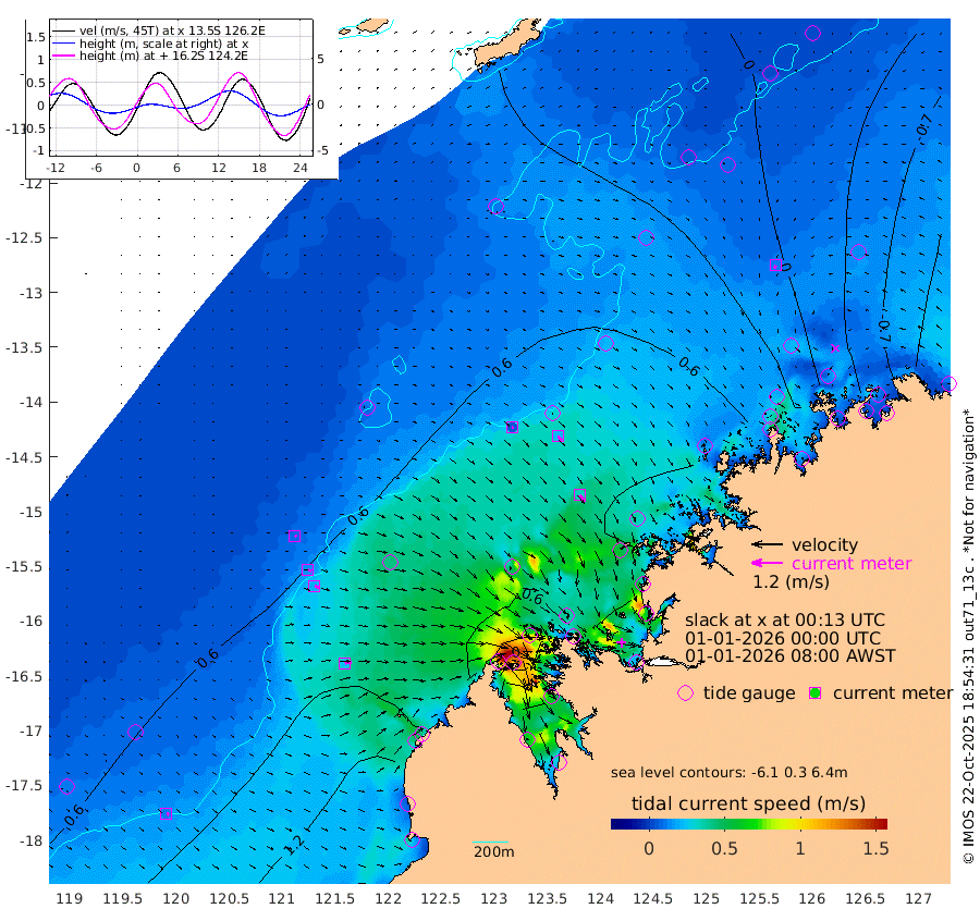 7cm/s 99T +10cm/s rms + 1cm/s 1T. NWSBRW 205m 10cm/s 118T +11cm/s rms + 6cm/s -110T. NWSROW 199m 33cm/s 140T +5cm/s rms + 2cm/s 65T. CAM050 58m 21cm/s 134T +12cm/s rms + 5cm/s 92T. CAM100 99m 7cm/s 99T +7cm/s rms + 1cm/s -85T. KIM400 396m 13cm/s 108T +9cm/s rms + 5cm/s -119T. KIM200 208m 20cm/s 110T +11cm/s rms + 5cm/s -147T. KIM100 99m 26cm/s 81T +8cm/s rms + 3cm/s -103T. KIM050 59m 11cm/s -150T +4cm/s rms + 2cm/s 23T. TIMORS88 91m 0cm Imperieuse Reef 51cm Mermaid Reef 145cm Broome 96cm Cape Baskerville 91cm Red Bluff 91cm Cape Boileau 48cm Scott Reef (WA) 31cm Ashmore Reef 69cm Karrakatta Bay 51cm Sunday Island -99cm Valentine Island -147cm Derby -55cm Port Usborne 107cm Bedford Islands 121cm Yampi Sound (Koolan Island) 168cm Macleay Island 104cm Adele Island 83cm Browse Island 125cm Shale Island 129cm Lizard Island 66cm Hall Point 110cm Degerando Island 112cm White Island 46cm Skua No. 4 Well 14cm Jabiru 94cm Maret Island 73cm Baudin Island 70cm Cape Voltaire (Krait Bay) -1cm Dillon Shoal 24cm Laminaria 51cm Port Warrender -6cm Troughton Island 58cm Cassini Island 25cm West Holothuria Reef Offshore -5cm Jar Island 69cm Lynher Bank 70cm Heywood Shoal 15cm Pee Shoal -33cm Van Cloon Shoal -39cm Carronade Island -37cm Guy Point -41cm Napier Broome Bay -130cm Lesueur Island