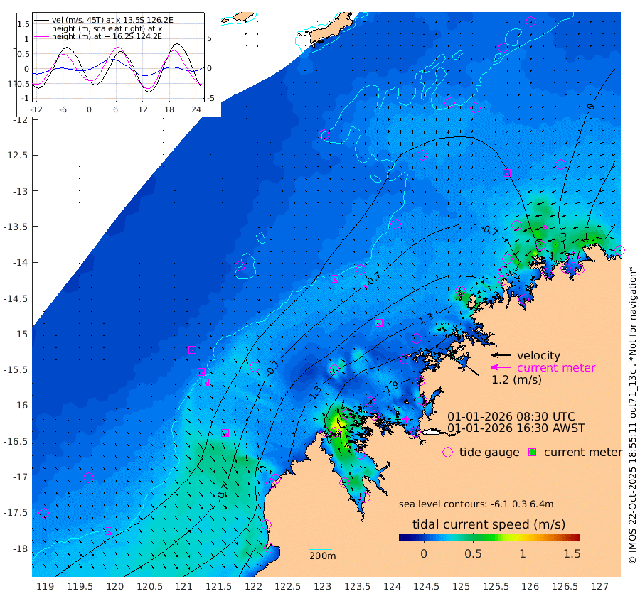 22cm/s 136T +10cm/s rms + 1cm/s 1T. NWSBRW 205m 20cm/s 146T +11cm/s rms + 6cm/s -110T. NWSROW 199m 30cm/s 144T +5cm/s rms + 2cm/s 65T. CAM050 58m 26cm/s 145T +12cm/s rms + 5cm/s 92T. CAM100 99m 5cm/s 143T +7cm/s rms + 1cm/s -85T. KIM400 396m 12cm/s 140T +9cm/s rms + 5cm/s -119T. KIM200 208m 25cm/s 148T +11cm/s rms + 5cm/s -147T. KIM100 99m 27cm/s 138T +8cm/s rms + 3cm/s -103T. KIM050 59m 9cm/s -163T +4cm/s rms + 2cm/s 23T. TIMORS88 91m -52cm Imperieuse Reef 1cm Mermaid Reef -90cm Broome -55cm Cape Baskerville -103cm Red Bluff -59cm Cape Boileau -3cm Scott Reef (WA) -20cm Ashmore Reef -162cm Karrakatta Bay -142cm Sunday Island -178cm Valentine Island -147cm Derby -169cm Port Usborne -150cm Bedford Islands -162cm Yampi Sound (Koolan Island) -206cm Macleay Island -100cm Adele Island -8cm Browse Island -219cm Shale Island -200cm Lizard Island -199cm Hall Point -122cm Degerando Island -88cm White Island -23cm Skua No. 4 Well -28cm Jabiru -68cm Maret Island -50cm Baudin Island -43cm Cape Voltaire (Krait Bay) -9cm Dillon Shoal 34cm Laminaria -51cm Port Warrender -8cm Troughton Island -44cm Cassini Island -9cm West Holothuria Reef Offshore -3cm Jar Island -30cm Lynher Bank -20cm Heywood Shoal -16cm Pee Shoal 15cm Van Cloon Shoal 43cm Carronade Island 51cm Guy Point 41cm Napier Broome Bay 109cm Lesueur Island