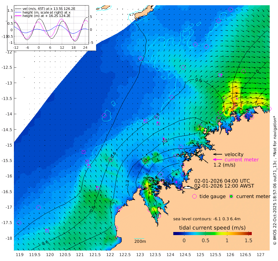 19cm/s -43T +10cm/s rms + 1cm/s 1T. NWSBRW 205m 25cm/s -35T +11cm/s rms + 6cm/s -110T. NWSROW 199m 41cm/s -23T +5cm/s rms + 2cm/s 65T. CAM050 58m 31cm/s -23T +12cm/s rms + 5cm/s 92T. CAM100 99m 6cm/s -31T +7cm/s rms + 1cm/s -85T. KIM400 396m 16cm/s -37T +9cm/s rms + 5cm/s -119T. KIM200 208m 28cm/s -33T +11cm/s rms + 5cm/s -147T. KIM100 99m 31cm/s -36T +8cm/s rms + 3cm/s -103T. KIM050 59m 34cm/s 67T +4cm/s rms + 2cm/s 23T. TIMORS88 91m 70cm Imperieuse Reef 16cm Mermaid Reef 83cm Broome 58cm Cape Baskerville 132cm Red Bluff 49cm Cape Boileau 14cm Scott Reef (WA) 39cm Ashmore Reef 186cm Karrakatta Bay 183cm Sunday Island 217cm Valentine Island 206cm Derby 212cm Port Usborne 176cm Bedford Islands 175cm Yampi Sound (Koolan Island) 192cm Macleay Island 106cm Adele Island -33cm Browse Island 243cm Shale Island 194cm Lizard Island 232cm Hall Point 129cm Degerando Island 83cm White Island 38cm Skua No. 4 Well 55cm Jabiru 64cm Maret Island 50cm Baudin Island 39cm Cape Voltaire (Krait Bay) 41cm Dillon Shoal 15cm Laminaria 41cm Port Warrender 5cm Troughton Island 43cm Cassini Island 15cm West Holothuria Reef Offshore -2cm Jar Island 41cm Lynher Bank 45cm Heywood Shoal 37cm Pee Shoal -5cm Van Cloon Shoal -48cm Carronade Island -50cm Guy Point -50cm Napier Broome Bay -113cm Lesueur Island