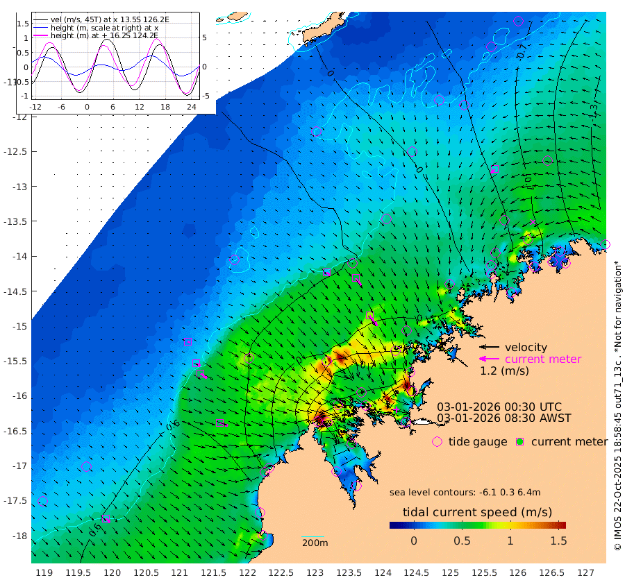 25cm/s 125T +10cm/s rms + 1cm/s 1T. NWSBRW 205m 33cm/s 138T +11cm/s rms + 6cm/s -110T. NWSROW 199m 77cm/s 145T +5cm/s rms + 2cm/s 65T. CAM050 58m 54cm/s 143T +12cm/s rms + 5cm/s 92T. CAM100 99m 13cm/s 119T +7cm/s rms + 1cm/s -85T. KIM400 396m 28cm/s 121T +9cm/s rms + 5cm/s -119T. KIM200 208m 48cm/s 127T +11cm/s rms + 5cm/s -147T. KIM100 99m 51cm/s 110T +8cm/s rms + 3cm/s -103T. KIM050 59m 32cm/s -134T +4cm/s rms + 2cm/s 23T. TIMORS88 91m -72cm Imperieuse Reef 41cm Mermaid Reef 103cm Broome 70cm Cape Baskerville 24cm Red Bluff 57cm Cape Boileau 34cm Scott Reef (WA) -5cm Ashmore Reef -73cm Karrakatta Bay -99cm Sunday Island -315cm Valentine Island -374cm Derby -267cm Port Usborne -13cm Bedford Islands -9cm Yampi Sound (Koolan Island) 33cm Macleay Island 33cm Adele Island 112cm Browse Island -59cm Shale Island -47cm Lizard Island -2cm Hall Point 22cm Degerando Island 54cm White Island 9cm Skua No. 4 Well -21cm Jabiru 54cm Maret Island 43cm Baudin Island 34cm Cape Voltaire (Krait Bay) -51cm Dillon Shoal 9cm Laminaria 10cm Port Warrender -38cm Troughton Island 22cm Cassini Island 1cm West Holothuria Reef Offshore -31cm Jar Island 37cm Lynher Bank 35cm Heywood Shoal -27cm Pee Shoal -60cm Van Cloon Shoal -40cm Carronade Island -37cm Guy Point -47cm Napier Broome Bay -107cm Lesueur Island