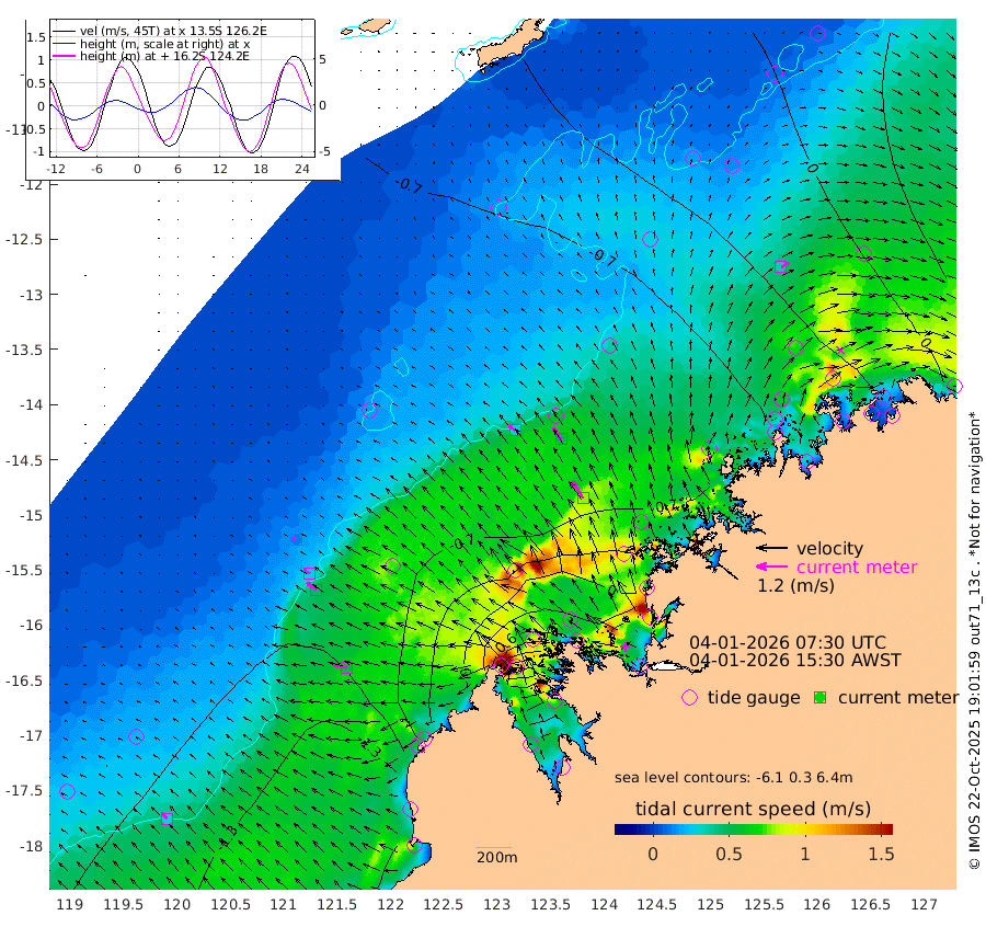 28cm/s -54T +10cm/s rms + 1cm/s 1T. NWSBRW 205m 31cm/s -47T +11cm/s rms + 6cm/s -110T. NWSROW 199m 77cm/s -32T +5cm/s rms + 2cm/s 65T. CAM050 58m 54cm/s -36T +12cm/s rms + 5cm/s 92T. CAM100 99m 11cm/s -64T +7cm/s rms + 1cm/s -85T. KIM400 396m 27cm/s -60T +9cm/s rms + 5cm/s -119T. KIM200 208m 47cm/s -54T +11cm/s rms + 5cm/s -147T. KIM100 99m 52cm/s -78T +8cm/s rms + 3cm/s -103T. KIM050 59m 36cm/s 62T +4cm/s rms + 2cm/s 23T. TIMORS88 91m 23cm Imperieuse Reef -79cm Mermaid Reef -169cm Broome -125cm Cape Baskerville -66cm Red Bluff -130cm Cape Boileau -76cm Scott Reef (WA) -51cm Ashmore Reef 23cm Karrakatta Bay 56cm Sunday Island 278cm Valentine Island 350cm Derby 236cm Port Usborne -29cm Bedford Islands -59cm Yampi Sound (Koolan Island) -102cm Macleay Island -90cm Adele Island -168cm Browse Island -9cm Shale Island -38cm Lizard Island -98cm Hall Point -95cm Degerando Island -129cm White Island -67cm Skua No. 4 Well -43cm Jabiru -132cm Maret Island -117cm Baudin Island -124cm Cape Voltaire (Krait Bay) -14cm Dillon Shoal -37cm Laminaria -121cm Port Warrender -72cm Troughton Island -111cm Cassini Island -85cm West Holothuria Reef Offshore -70cm Jar Island -86cm Lynher Bank -105cm Heywood Shoal -38cm Pee Shoal -28cm Van Cloon Shoal -71cm Carronade Island -76cm Guy Point -73cm Napier Broome Bay -22cm Lesueur Island
