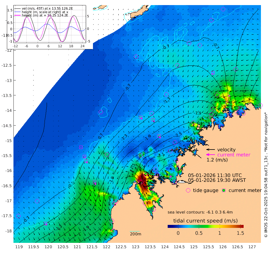 35cm/s 137T +10cm/s rms + 1cm/s 1T. NWSBRW 205m 29cm/s 152T +11cm/s rms + 6cm/s -110T. NWSROW 199m 37cm/s 152T +5cm/s rms + 2cm/s 65T. CAM050 58m 34cm/s 153T +12cm/s rms + 5cm/s 92T. CAM100 99m 7cm/s 159T +7cm/s rms + 1cm/s -85T. KIM400 396m 16cm/s 158T +9cm/s rms + 5cm/s -119T. KIM200 208m 32cm/s 162T +11cm/s rms + 5cm/s -147T. KIM100 99m 40cm/s 157T +8cm/s rms + 3cm/s -103T. KIM050 59m 25cm/s -148T +4cm/s rms + 2cm/s 23T. TIMORS88 91m -113cm Imperieuse Reef -51cm Mermaid Reef -224cm Broome -149cm Cape Baskerville -204cm Red Bluff -146cm Cape Boileau -50cm Scott Reef (WA) -72cm Ashmore Reef -287cm Karrakatta Bay -264cm Sunday Island -248cm Valentine Island -177cm Derby -258cm Port Usborne -303cm Bedford Islands -339cm Yampi Sound (Koolan Island) -369cm Macleay Island -206cm Adele Island -47cm Browse Island -439cm Shale Island -413cm Lizard Island -325cm Hall Point -276cm Degerando Island -226cm White Island -78cm Skua No. 4 Well -64cm Jabiru -170cm Maret Island -140cm Baudin Island -144cm Cape Voltaire (Krait Bay) -51cm Dillon Shoal 3cm Laminaria -167cm Port Warrender -71cm Troughton Island -127cm Cassini Island -68cm West Holothuria Reef Offshore -65cm Jar Island -114cm Lynher Bank -107cm Heywood Shoal -60cm Pee Shoal -13cm Van Cloon Shoal 8cm Carronade Island 12cm Guy Point 13cm Napier Broome Bay 114cm Lesueur Island