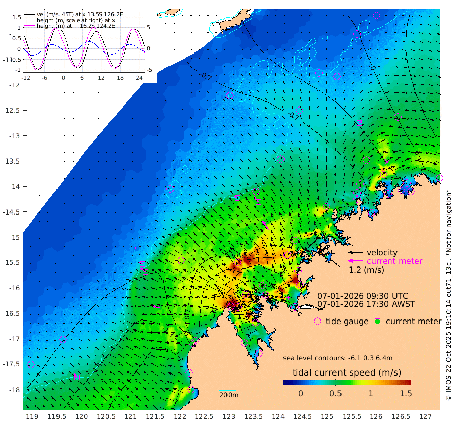 30cm/s -55T +10cm/s rms + 1cm/s 1T. NWSBRW 205m 35cm/s -45T +11cm/s rms + 6cm/s -110T. NWSROW 199m 86cm/s -33T +5cm/s rms + 2cm/s 65T. CAM050 58m 60cm/s -37T +12cm/s rms + 5cm/s 92T. CAM100 99m 12cm/s -66T +7cm/s rms + 1cm/s -85T. KIM400 396m 29cm/s -62T +9cm/s rms + 5cm/s -119T. KIM200 208m 53cm/s -53T +11cm/s rms + 5cm/s -147T. KIM100 99m 59cm/s -80T +8cm/s rms + 3cm/s -103T. KIM050 59m 26cm/s 55T +4cm/s rms + 2cm/s 23T. TIMORS88 91m 27cm Imperieuse Reef -91cm Mermaid Reef -199cm Broome -150cm Cape Baskerville -113cm Red Bluff -153cm Cape Boileau -82cm Scott Reef (WA) -58cm Ashmore Reef 11cm Karrakatta Bay 51cm Sunday Island 345cm Valentine Island 420cm Derby 288cm Port Usborne -37cm Bedford Islands -77cm Yampi Sound (Koolan Island) -102cm Macleay Island -103cm Adele Island -171cm Browse Island -30cm Shale Island -23cm Lizard Island -197cm Hall Point -120cm Degerando Island -152cm White Island -71cm Skua No. 4 Well -53cm Jabiru -148cm Maret Island -141cm Baudin Island -140cm Cape Voltaire (Krait Bay) -25cm Dillon Shoal -46cm Laminaria -138cm Port Warrender -69cm Troughton Island -126cm Cassini Island -97cm West Holothuria Reef Offshore -77cm Jar Island -95cm Lynher Bank -132cm Heywood Shoal -37cm Pee Shoal -30cm Van Cloon Shoal -73cm Carronade Island -81cm Guy Point -77cm Napier Broome Bay -9cm Lesueur Island