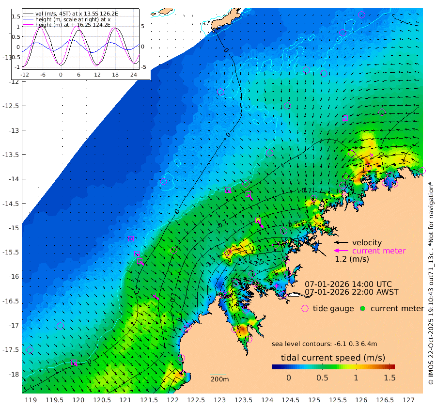 37cm/s 128T +10cm/s rms + 1cm/s 1T. NWSBRW 205m 42cm/s 144T +11cm/s rms + 6cm/s -110T. NWSROW 199m 81cm/s 145T +5cm/s rms + 2cm/s 65T. CAM050 58m 62cm/s 144T +12cm/s rms + 5cm/s 92T. CAM100 99m 12cm/s 134T +7cm/s rms + 1cm/s -85T. KIM400 396m 26cm/s 133T +9cm/s rms + 5cm/s -119T. KIM200 208m 50cm/s 140T +11cm/s rms + 5cm/s -147T. KIM100 99m 57cm/s 127T +8cm/s rms + 3cm/s -103T. KIM050 59m 32cm/s -139T +4cm/s rms + 2cm/s 23T. TIMORS88 91m -93cm Imperieuse Reef 18cm Mermaid Reef -43cm Broome -14cm Cape Baskerville -64cm Red Bluff -9cm Cape Boileau 14cm Scott Reef (WA) -8cm Ashmore Reef -205cm Karrakatta Bay -221cm Sunday Island -373cm Valentine Island -374cm Derby -357cm Port Usborne -192cm Bedford Islands -201cm Yampi Sound (Koolan Island) -206cm Macleay Island -83cm Adele Island 71cm Browse Island -302cm Shale Island -278cm Lizard Island -83cm Hall Point -126cm Degerando Island -76cm White Island -7cm Skua No. 4 Well -2cm Jabiru -26cm Maret Island -10cm Baudin Island -17cm Cape Voltaire (Krait Bay) -22cm Dillon Shoal 32cm Laminaria -35cm Port Warrender 0cm Troughton Island -6cm Cassini Island 15cm West Holothuria Reef Offshore 6cm Jar Island -25cm Lynher Bank -1cm Heywood Shoal -10cm Pee Shoal 21cm Van Cloon Shoal 57cm Carronade Island 60cm Guy Point 67cm Napier Broome Bay 100cm Lesueur Island