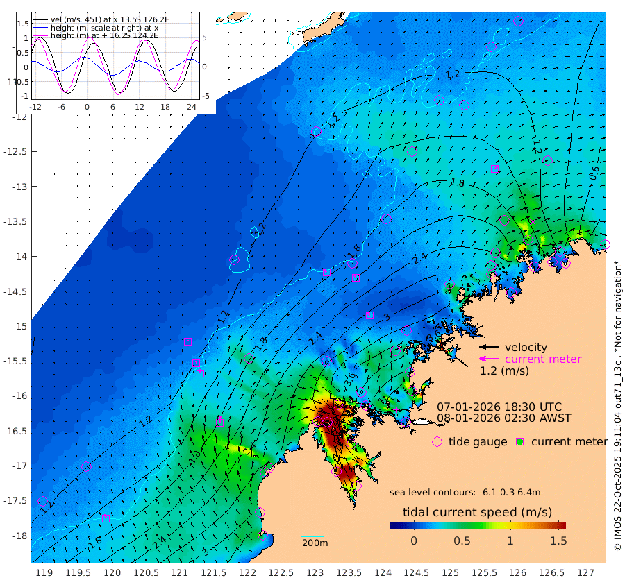 21cm/s -35T +10cm/s rms + 1cm/s 1T. NWSBRW 205m 25cm/s -19T +11cm/s rms + 6cm/s -110T. NWSROW 199m 21cm/s -21T +5cm/s rms + 2cm/s 65T. CAM050 58m 22cm/s -11T +12cm/s rms + 5cm/s 92T. CAM100 99m 7cm/s 1T +7cm/s rms + 1cm/s -85T. KIM400 396m 12cm/s -5T +9cm/s rms + 5cm/s -119T. KIM200 208m 24cm/s -8T +11cm/s rms + 5cm/s -147T. KIM100 99m 40cm/s 4T +8cm/s rms + 3cm/s -103T. KIM050 59m 25cm/s 32T +4cm/s rms + 2cm/s 23T. TIMORS88 91m 148cm Imperieuse Reef 111cm Mermaid Reef 304cm Broome 216cm Cape Baskerville 269cm Red Bluff 233cm Cape Boileau 107cm Scott Reef (WA) 133cm Ashmore Reef 328cm Karrakatta Bay 318cm Sunday Island 207cm Valentine Island 127cm Derby 230cm Port Usborne 345cm Bedford Islands 404cm Yampi Sound (Koolan Island) 421cm Macleay Island 268cm Adele Island 102cm Browse Island 492cm Shale Island 491cm Lizard Island 361cm Hall Point 345cm Degerando Island 313cm White Island 139cm Skua No. 4 Well 111cm Jabiru 245cm Maret Island 223cm Baudin Island 229cm Cape Voltaire (Krait Bay) 116cm Dillon Shoal 61cm Laminaria 266cm Port Warrender 155cm Troughton Island 206cm Cassini Island 153cm West Holothuria Reef Offshore 155cm Jar Island 182cm Lynher Bank 196cm Heywood Shoal 123cm Pee Shoal 98cm Van Cloon Shoal 92cm Carronade Island 95cm Guy Point 103cm Napier Broome Bay -7cm Lesueur Island