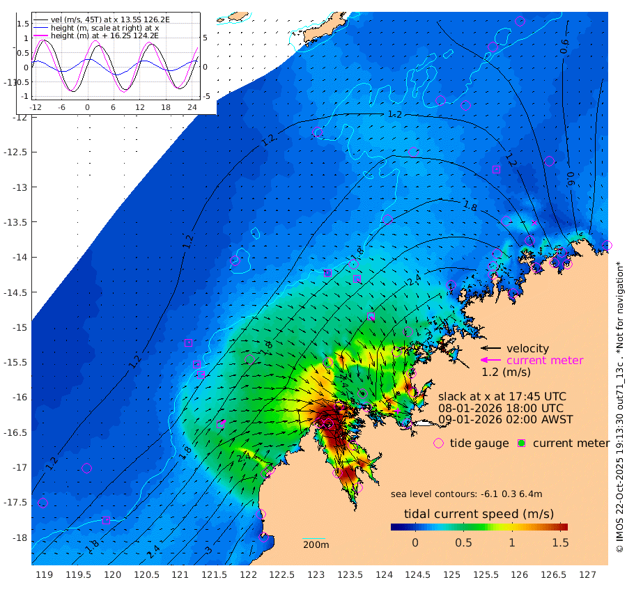 7cm/s -5T +10cm/s rms + 1cm/s 1T. NWSBRW 205m 9cm/s 51T +11cm/s rms + 6cm/s -110T. NWSROW 199m 27cm/s 139T +5cm/s rms + 2cm/s 65T. CAM050 58m 18cm/s 119T +12cm/s rms + 5cm/s 92T. CAM100 99m 7cm/s 68T +7cm/s rms + 1cm/s -85T. KIM400 396m 12cm/s 81T +9cm/s rms + 5cm/s -119T. KIM200 208m 18cm/s 82T +11cm/s rms + 5cm/s -147T. KIM100 99m 38cm/s 53T +8cm/s rms + 3cm/s -103T. KIM050 59m 9cm/s 13T +4cm/s rms + 2cm/s 23T. TIMORS88 91m 94cm Imperieuse Reef 130cm Mermaid Reef 321cm Broome 234cm Cape Baskerville 267cm Red Bluff 246cm Cape Boileau 118cm Scott Reef (WA) 129cm Ashmore Reef 236cm Karrakatta Bay 208cm Sunday Island -21cm Valentine Island -126cm Derby 17cm Port Usborne 270cm Bedford Islands 335cm Yampi Sound (Koolan Island) 349cm Macleay Island 246cm Adele Island 156cm Browse Island 377cm Shale Island 384cm Lizard Island 364cm Hall Point 311cm Degerando Island 308cm White Island 135cm Skua No. 4 Well 101cm Jabiru 253cm Maret Island 237cm Baudin Island 236cm Cape Voltaire (Krait Bay) 92cm Dillon Shoal 73cm Laminaria 264cm Port Warrender 147cm Troughton Island 213cm Cassini Island 163cm West Holothuria Reef Offshore 156cm Jar Island 183cm Lynher Bank 206cm Heywood Shoal 109cm Pee Shoal 91cm Van Cloon Shoal 107cm Carronade Island 110cm Guy Point 119cm Napier Broome Bay 7cm Lesueur Island