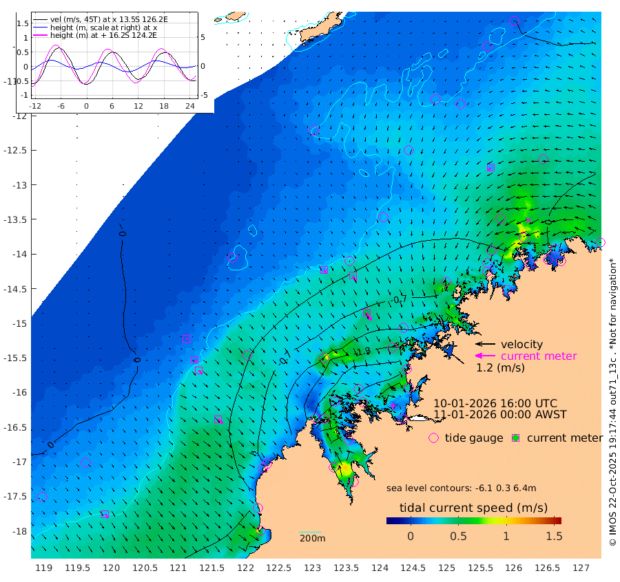 20cm/s 131T +10cm/s rms + 1cm/s 1T. NWSBRW 205m 26cm/s 145T +11cm/s rms + 6cm/s -110T. NWSROW 199m 54cm/s 149T +5cm/s rms + 2cm/s 65T. CAM050 58m 40cm/s 149T +12cm/s rms + 5cm/s 92T. CAM100 99m 7cm/s 142T +7cm/s rms + 1cm/s -85T. KIM400 396m 15cm/s 135T +9cm/s rms + 5cm/s -119T. KIM200 208m 30cm/s 142T +11cm/s rms + 5cm/s -147T. KIM100 99m 37cm/s 129T +8cm/s rms + 3cm/s -103T. KIM050 59m 20cm/s -127T +4cm/s rms + 2cm/s 23T. TIMORS88 91m -68cm Imperieuse Reef -4cm Mermaid Reef -26cm Broome -13cm Cape Baskerville -33cm Red Bluff -6cm Cape Boileau -7cm Scott Reef (WA) -19cm Ashmore Reef -140cm Karrakatta Bay -171cm Sunday Island -278cm Valentine Island -293cm Derby -266cm Port Usborne -135cm Bedford Islands -138cm Yampi Sound (Koolan Island) -154cm Macleay Island -68cm Adele Island 47cm Browse Island -197cm Shale Island -175cm Lizard Island -32cm Hall Point -79cm Degerando Island -57cm White Island -19cm Skua No. 4 Well -23cm Jabiru -19cm Maret Island -15cm Baudin Island -13cm Cape Voltaire (Krait Bay) -38cm Dillon Shoal -12cm Laminaria -26cm Port Warrender -11cm Troughton Island -6cm Cassini Island -5cm West Holothuria Reef Offshore -3cm Jar Island -31cm Lynher Bank -14cm Heywood Shoal -23cm Pee Shoal 0cm Van Cloon Shoal 27cm Carronade Island 22cm Guy Point 38cm Napier Broome Bay 48cm Lesueur Island