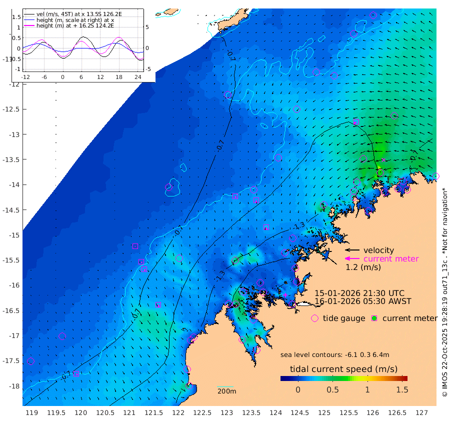 13cm/s 146T +10cm/s rms + 1cm/s 1T. NWSBRW 205m 14cm/s 153T +11cm/s rms + 6cm/s -110T. NWSROW 199m 22cm/s 171T +5cm/s rms + 2cm/s 65T. CAM050 58m 17cm/s 174T +12cm/s rms + 5cm/s 92T. CAM100 99m 3cm/s 170T +7cm/s rms + 1cm/s -85T. KIM400 396m 8cm/s 155T +9cm/s rms + 5cm/s -119T. KIM200 208m 16cm/s 163T +11cm/s rms + 5cm/s -147T. KIM100 99m 19cm/s 161T +8cm/s rms + 3cm/s -103T. KIM050 59m 22cm/s -121T +4cm/s rms + 2cm/s 23T. TIMORS88 91m -83cm Imperieuse Reef -59cm Mermaid Reef -104cm Broome -95cm Cape Baskerville -121cm Red Bluff -92cm Cape Boileau -58cm Scott Reef (WA) -82cm Ashmore Reef -152cm Karrakatta Bay -162cm Sunday Island -184cm Valentine Island -156cm Derby -158cm Port Usborne -160cm Bedford Islands -158cm Yampi Sound (Koolan Island) -175cm Macleay Island -124cm Adele Island -27cm Browse Island -186cm Shale Island -163cm Lizard Island -223cm Hall Point -137cm Degerando Island -115cm White Island -80cm Skua No. 4 Well -104cm Jabiru -110cm Maret Island -106cm Baudin Island -98cm Cape Voltaire (Krait Bay) -88cm Dillon Shoal -64cm Laminaria -126cm Port Warrender -106cm Troughton Island -103cm Cassini Island -92cm West Holothuria Reef Offshore -86cm Jar Island -83cm Lynher Bank -91cm Heywood Shoal -93cm Pee Shoal -84cm Van Cloon Shoal -72cm Carronade Island -77cm Guy Point -75cm Napier Broome Bay -64cm Lesueur Island