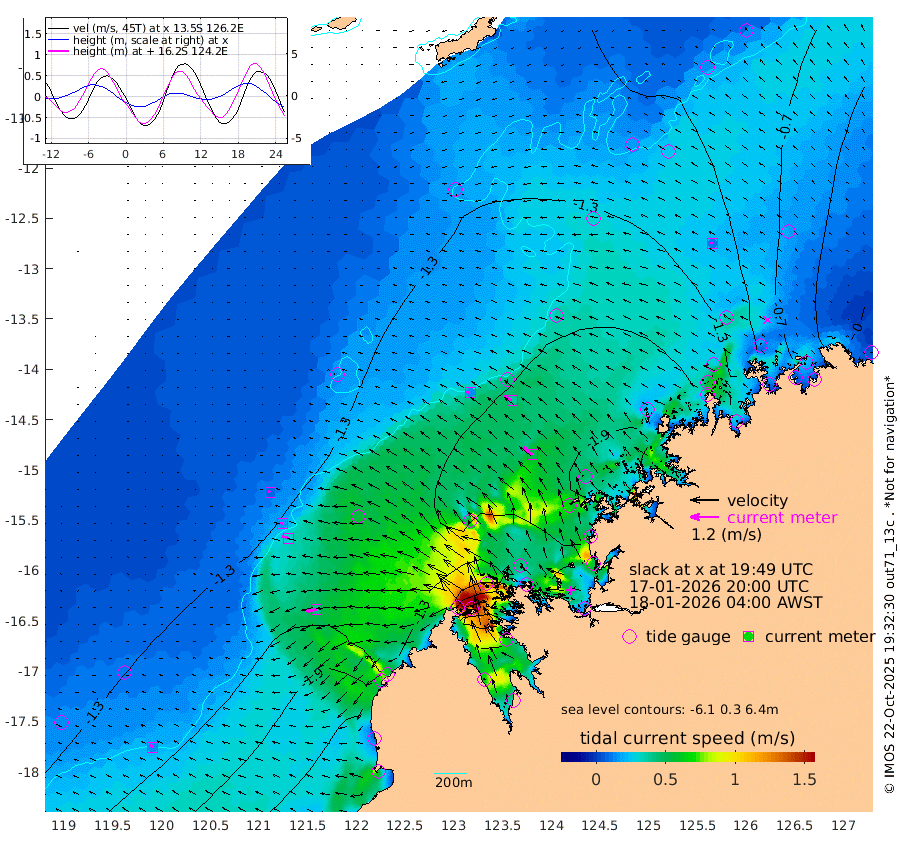 15cm/s -74T +10cm/s rms + 1cm/s 1T. NWSBRW 205m 14cm/s -63T +11cm/s rms + 6cm/s -110T. NWSROW 199m 49cm/s -50T +5cm/s rms + 2cm/s 65T. CAM050 58m 39cm/s -58T +12cm/s rms + 5cm/s 92T. CAM100 99m 10cm/s -86T +7cm/s rms + 1cm/s -85T. KIM400 396m 18cm/s -80T +9cm/s rms + 5cm/s -119T. KIM200 208m 30cm/s -75T +11cm/s rms + 5cm/s -147T. KIM100 99m 42cm/s -102T +8cm/s rms + 3cm/s -103T. KIM050 59m 11cm/s -67T +4cm/s rms + 2cm/s 23T. TIMORS88 91m -57cm Imperieuse Reef -127cm Mermaid Reef -233cm Broome -185cm Cape Baskerville -195cm Red Bluff -171cm Cape Boileau -117cm Scott Reef (WA) -128cm Ashmore Reef -139cm Karrakatta Bay -109cm Sunday Island 51cm Valentine Island 134cm Derby 37cm Port Usborne -168cm Bedford Islands -202cm Yampi Sound (Koolan Island) -249cm Macleay Island -194cm Adele Island -140cm Browse Island -205cm Shale Island -203cm Lizard Island -315cm Hall Point -196cm Degerando Island -204cm White Island -138cm Skua No. 4 Well -136cm Jabiru -204cm Maret Island -185cm Baudin Island -177cm Cape Voltaire (Krait Bay) -96cm Dillon Shoal -121cm Laminaria -178cm Port Warrender -130cm Troughton Island -180cm Cassini Island -145cm West Holothuria Reef Offshore -114cm Jar Island -142cm Lynher Bank -174cm Heywood Shoal -123cm Pee Shoal -83cm Van Cloon Shoal -86cm Carronade Island -92cm Guy Point -89cm Napier Broome Bay -14cm Lesueur Island