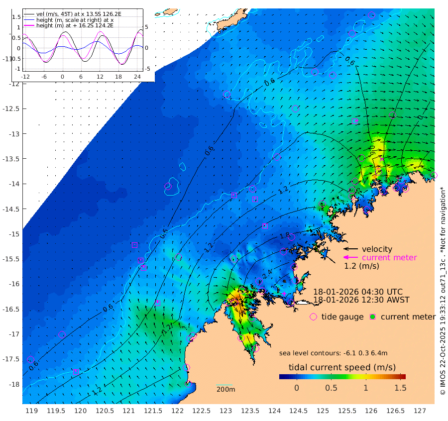 12cm/s -36T +10cm/s rms + 1cm/s 1T. NWSBRW 205m 18cm/s -26T +11cm/s rms + 6cm/s -110T. NWSROW 199m 19cm/s -8T +5cm/s rms + 2cm/s 65T. CAM050 58m 16cm/s -6T +12cm/s rms + 5cm/s 92T. CAM100 99m 4cm/s 2T +7cm/s rms + 1cm/s -85T. KIM400 396m 10cm/s -10T +9cm/s rms + 5cm/s -119T. KIM200 208m 18cm/s -10T +11cm/s rms + 5cm/s -147T. KIM100 99m 25cm/s -3T +8cm/s rms + 3cm/s -103T. KIM050 59m 30cm/s 66T +4cm/s rms + 2cm/s 23T. TIMORS88 91m 71cm Imperieuse Reef 53cm Mermaid Reef 158cm Broome 112cm Cape Baskerville 178cm Red Bluff 102cm Cape Boileau 47cm Scott Reef (WA) 64cm Ashmore Reef 191cm Karrakatta Bay 190cm Sunday Island 153cm Valentine Island 105cm Derby 154cm Port Usborne 208cm Bedford Islands 230cm Yampi Sound (Koolan Island) 249cm Macleay Island 156cm Adele Island 24cm Browse Island 287cm Shale Island 262cm Lizard Island 311cm Hall Point 188cm Degerando Island 160cm White Island 63cm Skua No. 4 Well 68cm Jabiru 123cm Maret Island 101cm Baudin Island 99cm Cape Voltaire (Krait Bay) 52cm Dillon Shoal 36cm Laminaria 118cm Port Warrender 43cm Troughton Island 91cm Cassini Island 60cm West Holothuria Reef Offshore 38cm Jar Island 89cm Lynher Bank 93cm Heywood Shoal 58cm Pee Shoal 16cm Van Cloon Shoal -6cm Carronade Island -7cm Guy Point -10cm Napier Broome Bay -92cm Lesueur Island