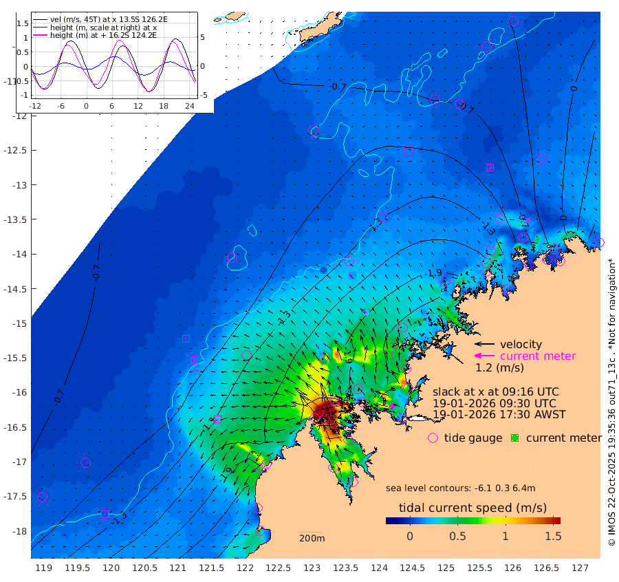 6cm/s 179T +10cm/s rms + 1cm/s 1T. NWSBRW 205m 5cm/s -93T +11cm/s rms + 6cm/s -110T. NWSROW 199m 27cm/s -41T +5cm/s rms + 2cm/s 65T. CAM050 58m 17cm/s -58T +12cm/s rms + 5cm/s 92T. CAM100 99m 5cm/s -110T +7cm/s rms + 1cm/s -85T. KIM400 396m 11cm/s -98T +9cm/s rms + 5cm/s -119T. KIM200 208m 17cm/s -97T +11cm/s rms + 5cm/s -147T. KIM100 99m 29cm/s -125T +8cm/s rms + 3cm/s -103T. KIM050 59m 5cm/s 146T +4cm/s rms + 2cm/s 23T. TIMORS88 91m -52cm Imperieuse Reef -78cm Mermaid Reef -244cm Broome -176cm Cape Baskerville -204cm Red Bluff -171cm Cape Boileau -71cm Scott Reef (WA) -82cm Ashmore Reef -186cm Karrakatta Bay -138cm Sunday Island 25cm Valentine Island 110cm Derby -5cm Port Usborne -201cm Bedford Islands -249cm Yampi Sound (Koolan Island) -300cm Macleay Island -192cm Adele Island -125cm Browse Island -288cm Shale Island -240cm Lizard Island -355cm Hall Point -230cm Degerando Island -220cm White Island -89cm Skua No. 4 Well -72cm Jabiru -188cm Maret Island -175cm Baudin Island -159cm Cape Voltaire (Krait Bay) -51cm Dillon Shoal -23cm Laminaria -169cm Port Warrender -84cm Troughton Island -154cm Cassini Island -101cm West Holothuria Reef Offshore -83cm Jar Island -112cm Lynher Bank -131cm Heywood Shoal -61cm Pee Shoal -27cm Van Cloon Shoal -30cm Carronade Island -28cm Guy Point -29cm Napier Broome Bay 73cm Lesueur Island