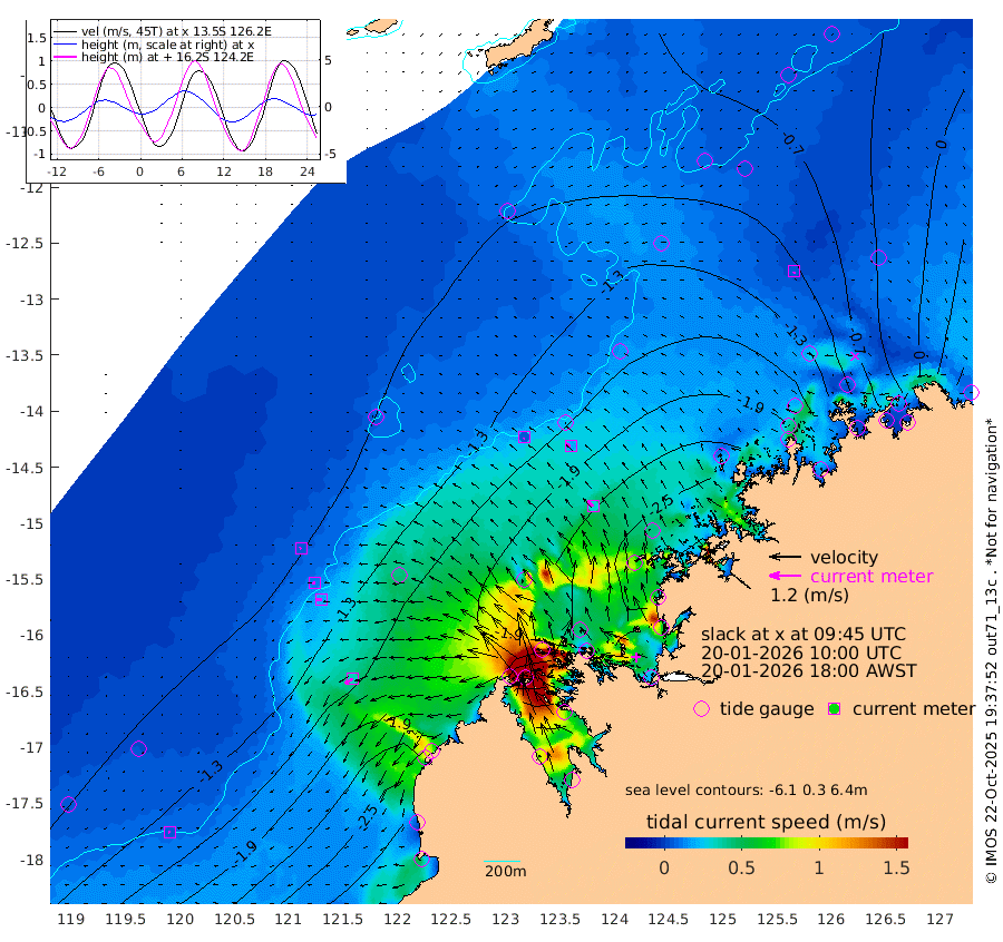 6cm/s -178T +10cm/s rms + 1cm/s 1T. NWSBRW 205m 6cm/s -96T +11cm/s rms + 6cm/s -110T. NWSROW 199m 31cm/s -43T +5cm/s rms + 2cm/s 65T. CAM050 58m 20cm/s -60T +12cm/s rms + 5cm/s 92T. CAM100 99m 6cm/s -111T +7cm/s rms + 1cm/s -85T. KIM400 396m 12cm/s -99T +9cm/s rms + 5cm/s -119T. KIM200 208m 20cm/s -97T +11cm/s rms + 5cm/s -147T. KIM100 99m 35cm/s -125T +8cm/s rms + 3cm/s -103T. KIM050 59m 5cm/s 171T +4cm/s rms + 2cm/s 23T. TIMORS88 91m -68cm Imperieuse Reef -98cm Mermaid Reef -288cm Broome -210cm Cape Baskerville -238cm Red Bluff -202cm Cape Boileau -88cm Scott Reef (WA) -102cm Ashmore Reef -218cm Karrakatta Bay -161cm Sunday Island 26cm Valentine Island 130cm Derby -7cm Port Usborne -240cm Bedford Islands -293cm Yampi Sound (Koolan Island) -340cm Macleay Island -223cm Adele Island -144cm Browse Island -339cm Shale Island -289cm Lizard Island -376cm Hall Point -271cm Degerando Island -257cm White Island -112cm Skua No. 4 Well -85cm Jabiru -223cm Maret Island -208cm Baudin Island -193cm Cape Voltaire (Krait Bay) -64cm Dillon Shoal -37cm Laminaria -203cm Port Warrender -108cm Troughton Island -186cm Cassini Island -123cm West Holothuria Reef Offshore -106cm Jar Island -137cm Lynher Bank -161cm Heywood Shoal -79cm Pee Shoal -40cm Van Cloon Shoal -45cm Carronade Island -44cm Guy Point -43cm Napier Broome Bay 67cm Lesueur Island