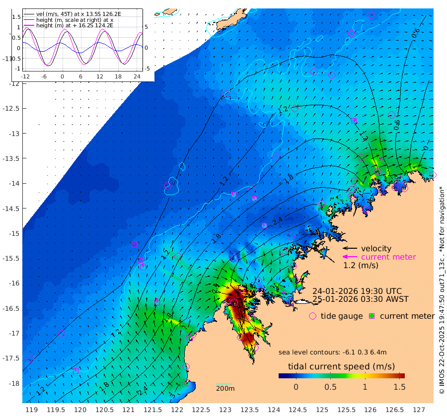 22cm/s -39T +10cm/s rms + 1cm/s 1T. NWSBRW 205m 25cm/s -21T +11cm/s rms + 6cm/s -110T. NWSROW 199m 26cm/s -28T +5cm/s rms + 2cm/s 65T. CAM050 58m 24cm/s -19T +12cm/s rms + 5cm/s 92T. CAM100 99m 7cm/s -2T +7cm/s rms + 1cm/s -85T. KIM400 396m 12cm/s -13T +9cm/s rms + 5cm/s -119T. KIM200 208m 25cm/s -16T +11cm/s rms + 5cm/s -147T. KIM100 99m 37cm/s -5T +8cm/s rms + 3cm/s -103T. KIM050 59m 21cm/s 39T +4cm/s rms + 2cm/s 23T. TIMORS88 91m 127cm Imperieuse Reef 86cm Mermaid Reef 259cm Broome 173cm Cape Baskerville 236cm Red Bluff 185cm Cape Boileau 80cm Scott Reef (WA) 105cm Ashmore Reef 293cm Karrakatta Bay 272cm Sunday Island 183cm Valentine Island 115cm Derby 213cm Port Usborne 299cm Bedford Islands 359cm Yampi Sound (Koolan Island) 366cm Macleay Island 224cm Adele Island 71cm Browse Island 452cm Shale Island 459cm Lizard Island 250cm Hall Point 294cm Degerando Island 262cm White Island 112cm Skua No. 4 Well 65cm Jabiru 200cm Maret Island 172cm Baudin Island 184cm Cape Voltaire (Krait Bay) 83cm Dillon Shoal 42cm Laminaria 200cm Port Warrender 104cm Troughton Island 163cm Cassini Island 108cm West Holothuria Reef Offshore 110cm Jar Island 145cm Lynher Bank 159cm Heywood Shoal 91cm Pee Shoal 55cm Van Cloon Shoal 42cm Carronade Island 40cm Guy Point 49cm Napier Broome Bay -66cm Lesueur Island