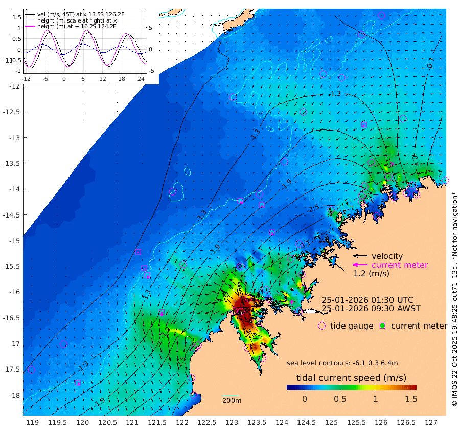 25cm/s 142T +10cm/s rms + 1cm/s 1T. NWSBRW 205m 23cm/s 163T +11cm/s rms + 6cm/s -110T. NWSROW 199m 21cm/s 167T +5cm/s rms + 2cm/s 65T. CAM050 58m 21cm/s 173T +12cm/s rms + 5cm/s 92T. CAM100 99m 6cm/s -170T +7cm/s rms + 1cm/s -85T. KIM400 396m 12cm/s 175T +9cm/s rms + 5cm/s -119T. KIM200 208m 26cm/s 172T +11cm/s rms + 5cm/s -147T. KIM100 99m 36cm/s -179T +8cm/s rms + 3cm/s -103T. KIM050 59m 19cm/s -153T +4cm/s rms + 2cm/s 23T. TIMORS88 91m -135cm Imperieuse Reef -101cm Mermaid Reef -277cm Broome -187cm Cape Baskerville -236cm Red Bluff -194cm Cape Boileau -93cm Scott Reef (WA) -125cm Ashmore Reef -295cm Karrakatta Bay -275cm Sunday Island -165cm Valentine Island -99cm Derby -206cm Port Usborne -310cm Bedford Islands -371cm Yampi Sound (Koolan Island) -377cm Macleay Island -240cm Adele Island -96cm Browse Island -457cm Shale Island -468cm Lizard Island -267cm Hall Point -310cm Degerando Island -282cm White Island -126cm Skua No. 4 Well -82cm Jabiru -226cm Maret Island -202cm Baudin Island -208cm Cape Voltaire (Krait Bay) -90cm Dillon Shoal -58cm Laminaria -226cm Port Warrender -140cm Troughton Island -191cm Cassini Island -134cm West Holothuria Reef Offshore -142cm Jar Island -165cm Lynher Bank -164cm Heywood Shoal -109cm Pee Shoal -82cm Van Cloon Shoal -77cm Carronade Island -69cm Guy Point -84cm Napier Broome Bay 10cm Lesueur Island
