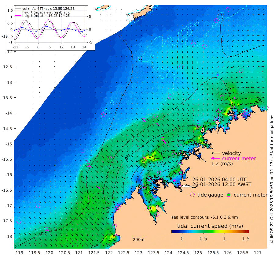 31cm/s 128T +10cm/s rms + 1cm/s 1T. NWSBRW 205m 37cm/s 144T +11cm/s rms + 6cm/s -110T. NWSROW 199m 73cm/s 144T +5cm/s rms + 2cm/s 65T. CAM050 58m 55cm/s 143T +12cm/s rms + 5cm/s 92T. CAM100 99m 10cm/s 133T +7cm/s rms + 1cm/s -85T. KIM400 396m 24cm/s 127T +9cm/s rms + 5cm/s -119T. KIM200 208m 47cm/s 135T +11cm/s rms + 5cm/s -147T. KIM100 99m 51cm/s 121T +8cm/s rms + 3cm/s -103T. KIM050 59m 17cm/s -156T +4cm/s rms + 2cm/s 23T. TIMORS88 91m -76cm Imperieuse Reef 25cm Mermaid Reef -3cm Broome 16cm Cape Baskerville -38cm Red Bluff 5cm Cape Boileau 20cm Scott Reef (WA) -9cm Ashmore Reef -164cm Karrakatta Bay -175cm Sunday Island -324cm Valentine Island -346cm Derby -307cm Port Usborne -118cm Bedford Islands -139cm Yampi Sound (Koolan Island) -152cm Macleay Island -54cm Adele Island 62cm Browse Island -218cm Shale Island -229cm Lizard Island -55cm Hall Point -69cm Degerando Island -42cm White Island -2cm Skua No. 4 Well -1cm Jabiru -6cm Maret Island 2cm Baudin Island 2cm Cape Voltaire (Krait Bay) -19cm Dillon Shoal 29cm Laminaria -8cm Port Warrender -3cm Troughton Island 4cm Cassini Island 10cm West Holothuria Reef Offshore -3cm Jar Island -5cm Lynher Bank 20cm Heywood Shoal -11cm Pee Shoal -1cm Van Cloon Shoal 32cm Carronade Island 42cm Guy Point 29cm Napier Broome Bay 54cm Lesueur Island