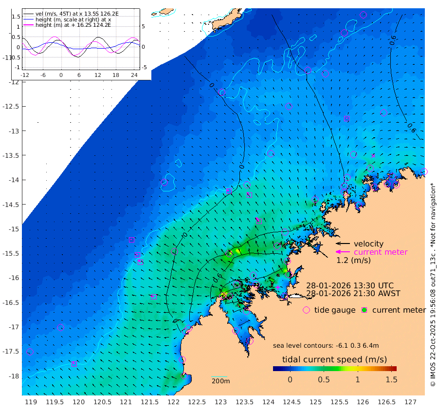 16cm/s -50T +10cm/s rms + 1cm/s 1T. NWSBRW 205m 19cm/s -41T +11cm/s rms + 6cm/s -110T. NWSROW 199m 42cm/s -37T +5cm/s rms + 2cm/s 65T. CAM050 58m 31cm/s -39T +12cm/s rms + 5cm/s 92T. CAM100 99m 7cm/s -61T +7cm/s rms + 1cm/s -85T. KIM400 396m 15cm/s -59T +9cm/s rms + 5cm/s -119T. KIM200 208m 28cm/s -48T +11cm/s rms + 5cm/s -147T. KIM100 99m 31cm/s -73T +8cm/s rms + 3cm/s -103T. KIM050 59m 10cm/s 7T +4cm/s rms + 2cm/s 23T. TIMORS88 91m 43cm Imperieuse Reef -26cm Mermaid Reef -52cm Broome -32cm Cape Baskerville -18cm Red Bluff -27cm Cape Boileau -17cm Scott Reef (WA) 10cm Ashmore Reef 61cm Karrakatta Bay 61cm Sunday Island 233cm Valentine Island 254cm Derby 187cm Port Usborne 20cm Bedford Islands 11cm Yampi Sound (Koolan Island) 46cm Macleay Island 8cm Adele Island -37cm Browse Island 39cm Shale Island 31cm Lizard Island 62cm Hall Point -9cm Degerando Island -30cm White Island 8cm Skua No. 4 Well 36cm Jabiru -12cm Maret Island -15cm Baudin Island -18cm Cape Voltaire (Krait Bay) 29cm Dillon Shoal -15cm Laminaria -6cm Port Warrender 35cm Troughton Island 1cm Cassini Island 4cm West Holothuria Reef Offshore 13cm Jar Island -24cm Lynher Bank -32cm Heywood Shoal 28cm Pee Shoal 31cm Van Cloon Shoal 12cm Carronade Island 7cm Guy Point 15cm Napier Broome Bay 39cm Lesueur Island