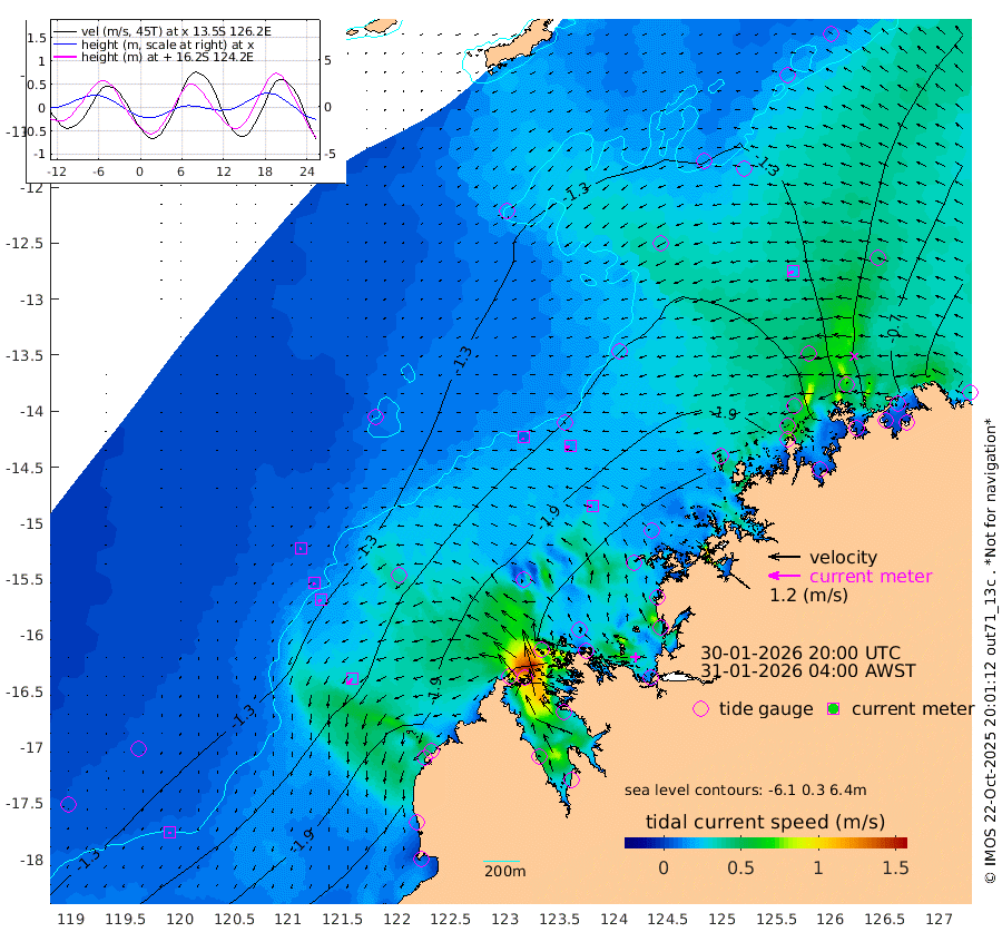 9cm/s -174T +10cm/s rms + 1cm/s 1T. NWSBRW 205m 8cm/s -169T +11cm/s rms + 6cm/s -110T. NWSROW 199m 19cm/s -91T +5cm/s rms + 2cm/s 65T. CAM050 58m 17cm/s -104T +12cm/s rms + 5cm/s 92T. CAM100 99m 6cm/s -120T +7cm/s rms + 1cm/s -85T. KIM400 396m 9cm/s -124T +9cm/s rms + 5cm/s -119T. KIM200 208m 16cm/s -130T +11cm/s rms + 5cm/s -147T. KIM100 99m 28cm/s -139T +8cm/s rms + 3cm/s -103T. KIM050 59m 24cm/s -107T +4cm/s rms + 2cm/s 23T. TIMORS88 91m -106cm Imperieuse Reef -118cm Mermaid Reef -224cm Broome -176cm Cape Baskerville -192cm Red Bluff -173cm Cape Boileau -117cm Scott Reef (WA) -139cm Ashmore Reef -215cm Karrakatta Bay -208cm Sunday Island -116cm Valentine Island -69cm Derby -135cm Port Usborne -240cm Bedford Islands -255cm Yampi Sound (Koolan Island) -309cm Macleay Island -217cm Adele Island -103cm Browse Island -291cm Shale Island -276cm Lizard Island -287cm Hall Point -231cm Degerando Island -205cm White Island -152cm Skua No. 4 Well -157cm Jabiru -204cm Maret Island -176cm Baudin Island -179cm Cape Voltaire (Krait Bay) -126cm Dillon Shoal -121cm Laminaria -181cm Port Warrender -144cm Troughton Island -182cm Cassini Island -142cm West Holothuria Reef Offshore -117cm Jar Island -151cm Lynher Bank -176cm Heywood Shoal -145cm Pee Shoal -99cm Van Cloon Shoal -83cm Carronade Island -90cm Guy Point -91cm Napier Broome Bay -17cm Lesueur Island