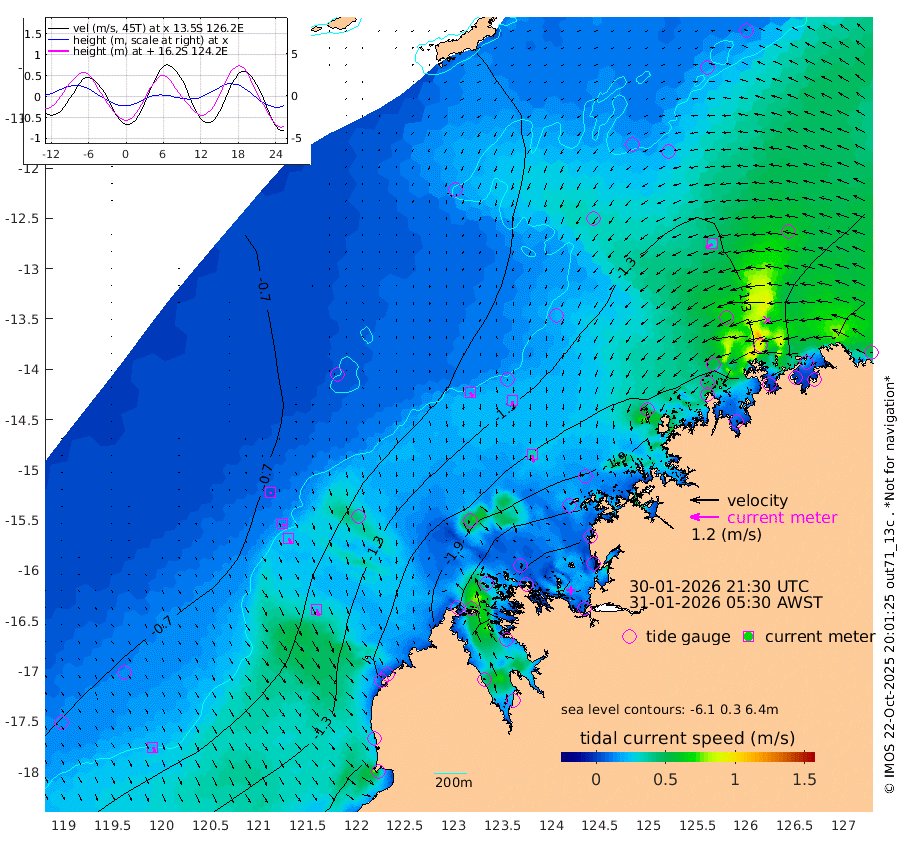 19cm/s 143T +10cm/s rms + 1cm/s 1T. NWSBRW 205m 22cm/s 152T +11cm/s rms + 6cm/s -110T. NWSROW 199m 32cm/s 168T +5cm/s rms + 2cm/s 65T. CAM050 58m 26cm/s 170T +12cm/s rms + 5cm/s 92T. CAM100 99m 6cm/s 163T +7cm/s rms + 1cm/s -85T. KIM400 396m 13cm/s 151T +9cm/s rms + 5cm/s -119T. KIM200 208m 26cm/s 158T +11cm/s rms + 5cm/s -147T. KIM100 99m 29cm/s 160T +8cm/s rms + 3cm/s -103T. KIM050 59m 33cm/s -121T +4cm/s rms + 2cm/s 23T. TIMORS88 91m -121cm Imperieuse Reef -73cm Mermaid Reef -147cm Broome -120cm Cape Baskerville -166cm Red Bluff -124cm Cape Boileau -75cm Scott Reef (WA) -113cm Ashmore Reef -222cm Karrakatta Bay -221cm Sunday Island -238cm Valentine Island -219cm Derby -230cm Port Usborne -216cm Bedford Islands -226cm Yampi Sound (Koolan Island) -250cm Macleay Island -170cm Adele Island -33cm Browse Island -282cm Shale Island -254cm Lizard Island -249cm Hall Point -194cm Degerando Island -151cm White Island -117cm Skua No. 4 Well -129cm Jabiru -149cm Maret Island -130cm Baudin Island -136cm Cape Voltaire (Krait Bay) -122cm Dillon Shoal -81cm Laminaria -153cm Port Warrender -133cm Troughton Island -146cm Cassini Island -115cm West Holothuria Reef Offshore -110cm Jar Island -105cm Lynher Bank -129cm Heywood Shoal -128cm Pee Shoal -105cm Van Cloon Shoal -81cm Carronade Island -83cm Guy Point -91cm Napier Broome Bay -49cm Lesueur Island