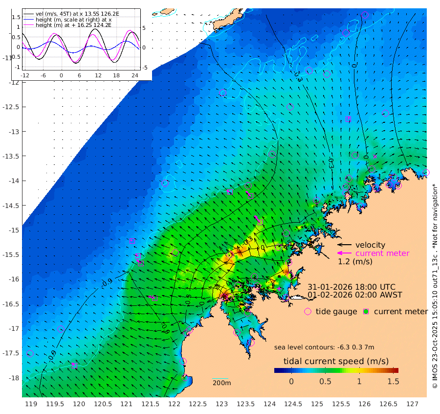 32cm/s -58T +10cm/s rms + 1cm/s 1T. NWSBRW 205m 32cm/s -47T +11cm/s rms + 6cm/s -110T. NWSROW 199m 76cm/s -40T +5cm/s rms + 2cm/s 65T. CAM050 58m 57cm/s -43T +12cm/s rms + 5cm/s 92T. CAM100 99m 14cm/s -66T +7cm/s rms + 1cm/s -85T. KIM400 396m 28cm/s -60T +9cm/s rms + 5cm/s -119T. KIM200 208m 49cm/s -53T +11cm/s rms + 5cm/s -147T. KIM100 99m 55cm/s -74T +8cm/s rms + 3cm/s -103T. KIM050 59m 19cm/s 14T +4cm/s rms + 2cm/s 23T. TIMORS88 91m 34cm Imperieuse Reef -84cm Mermaid Reef -113cm Broome -90cm Cape Baskerville -40cm Red Bluff -77cm Cape Boileau -77cm Scott Reef (WA) -50cm Ashmore Reef 48cm Karrakatta Bay 54cm Sunday Island 259cm Valentine Island 298cm Derby 214cm Port Usborne -5cm Bedford Islands -8cm Yampi Sound (Koolan Island) -43cm Macleay Island -62cm Adele Island -117cm Browse Island 46cm Shale Island 25cm Lizard Island -57cm Hall Point -38cm Degerando Island -74cm White Island -62cm Skua No. 4 Well -60cm Jabiru -85cm Maret Island -78cm Baudin Island -71cm Cape Voltaire (Krait Bay) -18cm Dillon Shoal -90cm Laminaria -47cm Port Warrender -29cm Troughton Island -65cm Cassini Island -59cm West Holothuria Reef Offshore -25cm Jar Island -76cm Lynher Bank -86cm Heywood Shoal -40cm Pee Shoal -14cm Van Cloon Shoal -31cm Carronade Island -40cm Guy Point -30cm Napier Broome Bay 4cm Lesueur Island