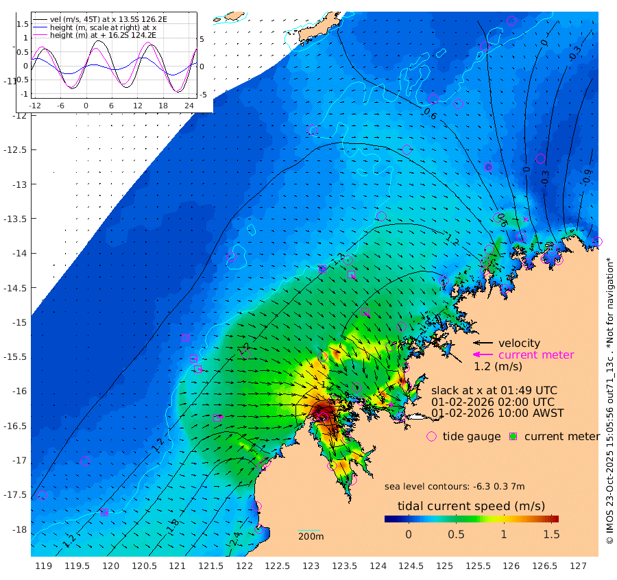 9cm/s 86T +10cm/s rms + 1cm/s 1T. NWSBRW 205m 15cm/s 113T +11cm/s rms + 6cm/s -110T. NWSROW 199m 49cm/s 140T +5cm/s rms + 2cm/s 65T. CAM050 58m 34cm/s 133T +12cm/s rms + 5cm/s 92T. CAM100 99m 10cm/s 98T +7cm/s rms + 1cm/s -85T. KIM400 396m 19cm/s 103T +9cm/s rms + 5cm/s -119T. KIM200 208m 30cm/s 107T +11cm/s rms + 5cm/s -147T. KIM100 99m 39cm/s 81T +8cm/s rms + 3cm/s -103T. KIM050 59m 7cm/s 143T +4cm/s rms + 2cm/s 23T. TIMORS88 91m 22cm Imperieuse Reef 93cm Mermaid Reef 232cm Broome 169cm Cape Baskerville 165cm Red Bluff 150cm Cape Boileau 87cm Scott Reef (WA) 76cm Ashmore Reef 123cm Karrakatta Bay 92cm Sunday Island -97cm Valentine Island -187cm Derby -59cm Port Usborne 184cm Bedford Islands 196cm Yampi Sound (Koolan Island) 264cm Macleay Island 178cm Adele Island 135cm Browse Island 205cm Shale Island 192cm Lizard Island 256cm Hall Point 192cm Degerando Island 185cm White Island 93cm Skua No. 4 Well 74cm Jabiru 174cm Maret Island 144cm Baudin Island 135cm Cape Voltaire (Krait Bay) 28cm Dillon Shoal 58cm Laminaria 124cm Port Warrender 48cm Troughton Island 128cm Cassini Island 77cm West Holothuria Reef Offshore 36cm Jar Island 121cm Lynher Bank 124cm Heywood Shoal 60cm Pee Shoal -4cm Van Cloon Shoal -9cm Carronade Island -6cm Guy Point -14cm Napier Broome Bay -118cm Lesueur Island