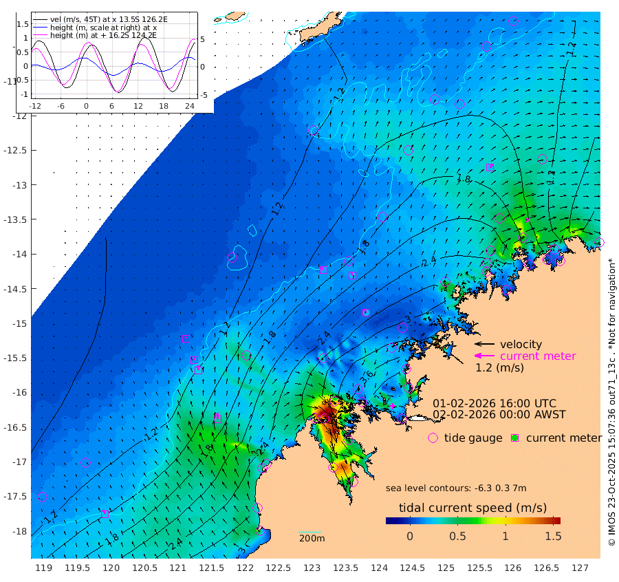21cm/s -36T +10cm/s rms + 1cm/s 1T. NWSBRW 205m 26cm/s -21T +11cm/s rms + 6cm/s -110T. NWSROW 199m 24cm/s -19T +5cm/s rms + 2cm/s 65T. CAM050 58m 24cm/s -12T +12cm/s rms + 5cm/s 92T. CAM100 99m 7cm/s -11T +7cm/s rms + 1cm/s -85T. KIM400 396m 14cm/s -14T +9cm/s rms + 5cm/s -119T. KIM200 208m 27cm/s -12T +11cm/s rms + 5cm/s -147T. KIM100 99m 39cm/s -2T +8cm/s rms + 3cm/s -103T. KIM050 59m 24cm/s 32T +4cm/s rms + 2cm/s 23T. TIMORS88 91m 152cm Imperieuse Reef 103cm Mermaid Reef 274cm Broome 201cm Cape Baskerville 246cm Red Bluff 217cm Cape Boileau 105cm Scott Reef (WA) 141cm Ashmore Reef 312cm Karrakatta Bay 294cm Sunday Island 236cm Valentine Island 169cm Derby 248cm Port Usborne 325cm Bedford Islands 365cm Yampi Sound (Koolan Island) 404cm Macleay Island 259cm Adele Island 100cm Browse Island 444cm Shale Island 428cm Lizard Island 334cm Hall Point 320cm Degerando Island 272cm White Island 150cm Skua No. 4 Well 126cm Jabiru 241cm Maret Island 209cm Baudin Island 223cm Cape Voltaire (Krait Bay) 131cm Dillon Shoal 65cm Laminaria 253cm Port Warrender 176cm Troughton Island 215cm Cassini Island 157cm West Holothuria Reef Offshore 157cm Jar Island 165cm Lynher Bank 188cm Heywood Shoal 144cm Pee Shoal 113cm Van Cloon Shoal 103cm Carronade Island 104cm Guy Point 114cm Napier Broome Bay 20cm Lesueur Island