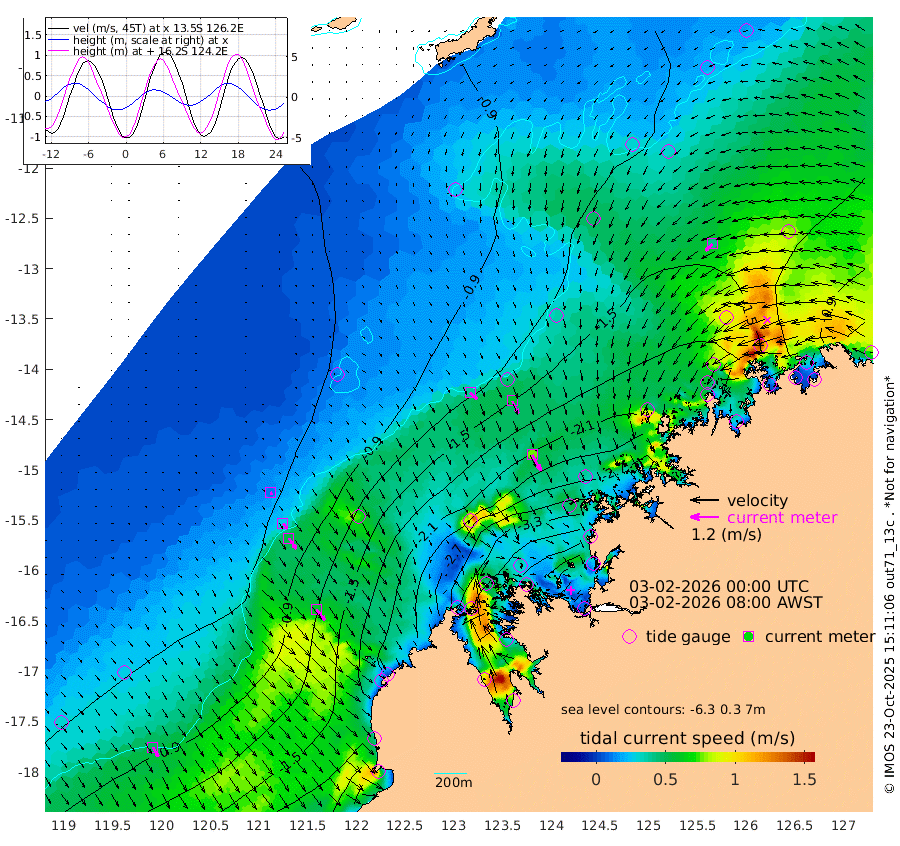 40cm/s 133T +10cm/s rms + 1cm/s 1T. NWSBRW 205m 46cm/s 149T +11cm/s rms + 6cm/s -110T. NWSROW 199m 76cm/s 152T +5cm/s rms + 2cm/s 65T. CAM050 58m 59cm/s 153T +12cm/s rms + 5cm/s 92T. CAM100 99m 12cm/s 147T +7cm/s rms + 1cm/s -85T. KIM400 396m 28cm/s 139T +9cm/s rms + 5cm/s -119T. KIM200 208m 54cm/s 145T +11cm/s rms + 5cm/s -147T. KIM100 99m 58cm/s 143T +8cm/s rms + 3cm/s -103T. KIM050 59m 42cm/s -132T +4cm/s rms + 2cm/s 23T. TIMORS88 91m -169cm Imperieuse Reef -58cm Mermaid Reef -172cm Broome -124cm Cape Baskerville -212cm Red Bluff -137cm Cape Boileau -58cm Scott Reef (WA) -109cm Ashmore Reef -328cm Karrakatta Bay -339cm Sunday Island -405cm Valentine Island -380cm Derby -391cm Port Usborne -314cm Bedford Islands -338cm Yampi Sound (Koolan Island) -328cm Macleay Island -199cm Adele Island 10cm Browse Island -446cm Shale Island -432cm Lizard Island -237cm Hall Point -263cm Degerando Island -202cm White Island -104cm Skua No. 4 Well -93cm Jabiru -157cm Maret Island -139cm Baudin Island -146cm Cape Voltaire (Krait Bay) -114cm Dillon Shoal -47cm Laminaria -182cm Port Warrender -128cm Troughton Island -142cm Cassini Island -105cm West Holothuria Reef Offshore -119cm Jar Island -120cm Lynher Bank -122cm Heywood Shoal -116cm Pee Shoal -99cm Van Cloon Shoal -64cm Carronade Island -60cm Guy Point -76cm Napier Broome Bay -19cm Lesueur Island
