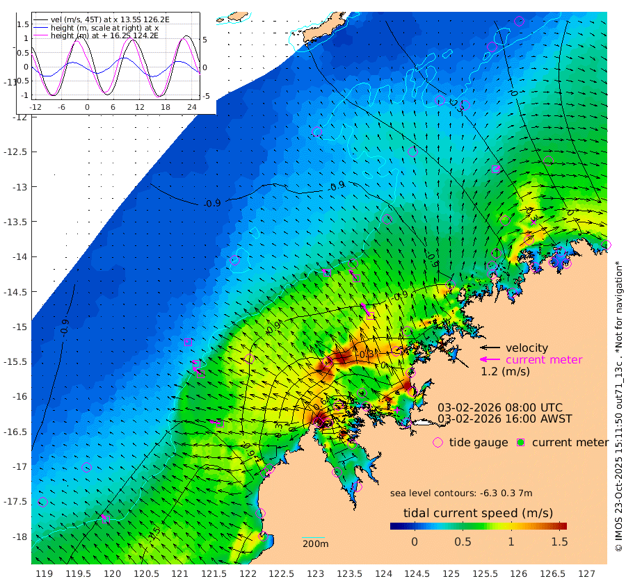 35cm/s -54T +10cm/s rms + 1cm/s 1T. NWSBRW 205m 39cm/s -45T +11cm/s rms + 6cm/s -110T. NWSROW 199m 95cm/s -34T +5cm/s rms + 2cm/s 65T. CAM050 58m 68cm/s -38T +12cm/s rms + 5cm/s 92T. CAM100 99m 14cm/s -65T +7cm/s rms + 1cm/s -85T. KIM400 396m 32cm/s -61T +9cm/s rms + 5cm/s -119T. KIM200 208m 58cm/s -53T +11cm/s rms + 5cm/s -147T. KIM100 99m 65cm/s -77T +8cm/s rms + 3cm/s -103T. KIM050 59m 30cm/s 54T +4cm/s rms + 2cm/s 23T. TIMORS88 91m 34cm Imperieuse Reef -97cm Mermaid Reef -193cm Broome -147cm Cape Baskerville -89cm Red Bluff -149cm Cape Boileau -92cm Scott Reef (WA) -63cm Ashmore Reef 31cm Karrakatta Bay 68cm Sunday Island 352cm Valentine Island 426cm Derby 295cm Port Usborne -25cm Bedford Islands -56cm Yampi Sound (Koolan Island) -108cm Macleay Island -105cm Adele Island -187cm Browse Island 2cm Shale Island -1cm Lizard Island -152cm Hall Point -104cm Degerando Island -141cm White Island -81cm Skua No. 4 Well -52cm Jabiru -149cm Maret Island -135cm Baudin Island -137cm Cape Voltaire (Krait Bay) -28cm Dillon Shoal -59cm Laminaria -129cm Port Warrender -73cm Troughton Island -126cm Cassini Island -99cm West Holothuria Reef Offshore -72cm Jar Island -97cm Lynher Bank -131cm Heywood Shoal -47cm Pee Shoal -30cm Van Cloon Shoal -73cm Carronade Island -83cm Guy Point -75cm Napier Broome Bay -9cm Lesueur Island
