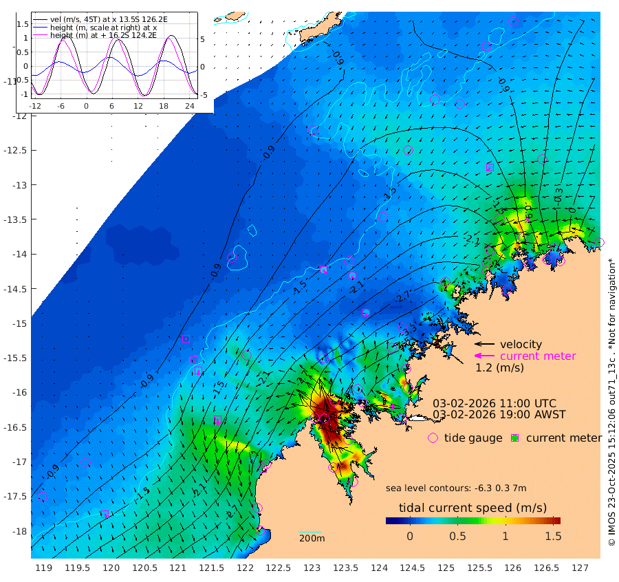 28cm/s 143T +10cm/s rms + 1cm/s 1T. NWSBRW 205m 23cm/s 160T +11cm/s rms + 6cm/s -110T. NWSROW 199m 19cm/s 169T +5cm/s rms + 2cm/s 65T. CAM050 58m 22cm/s 170T +12cm/s rms + 5cm/s 92T. CAM100 99m 7cm/s -178T +7cm/s rms + 1cm/s -85T. KIM400 396m 13cm/s -177T +9cm/s rms + 5cm/s -119T. KIM200 208m 26cm/s -179T +11cm/s rms + 5cm/s -147T. KIM100 99m 39cm/s 179T +8cm/s rms + 3cm/s -103T. KIM050 59m 23cm/s -140T +4cm/s rms + 2cm/s 23T. TIMORS88 91m -131cm Imperieuse Reef -96cm Mermaid Reef -306cm Broome -214cm Cape Baskerville -264cm Red Bluff -211cm Cape Boileau -92cm Scott Reef (WA) -114cm Ashmore Reef -321cm Karrakatta Bay -297cm Sunday Island -200cm Valentine Island -107cm Derby -225cm Port Usborne -359cm Bedford Islands -404cm Yampi Sound (Koolan Island) -440cm Macleay Island -268cm Adele Island -98cm Browse Island -497cm Shale Island -464cm Lizard Island -351cm Hall Point -346cm Degerando Island -298cm White Island -124cm Skua No. 4 Well -86cm Jabiru -240cm Maret Island -204cm Baudin Island -213cm Cape Voltaire (Krait Bay) -86cm Dillon Shoal -36cm Laminaria -240cm Port Warrender -122cm Troughton Island -193cm Cassini Island -122cm West Holothuria Reef Offshore -113cm Jar Island -167cm Lynher Bank -174cm Heywood Shoal -101cm Pee Shoal -48cm Van Cloon Shoal -36cm Carronade Island -36cm Guy Point -32cm Napier Broome Bay 89cm Lesueur Island