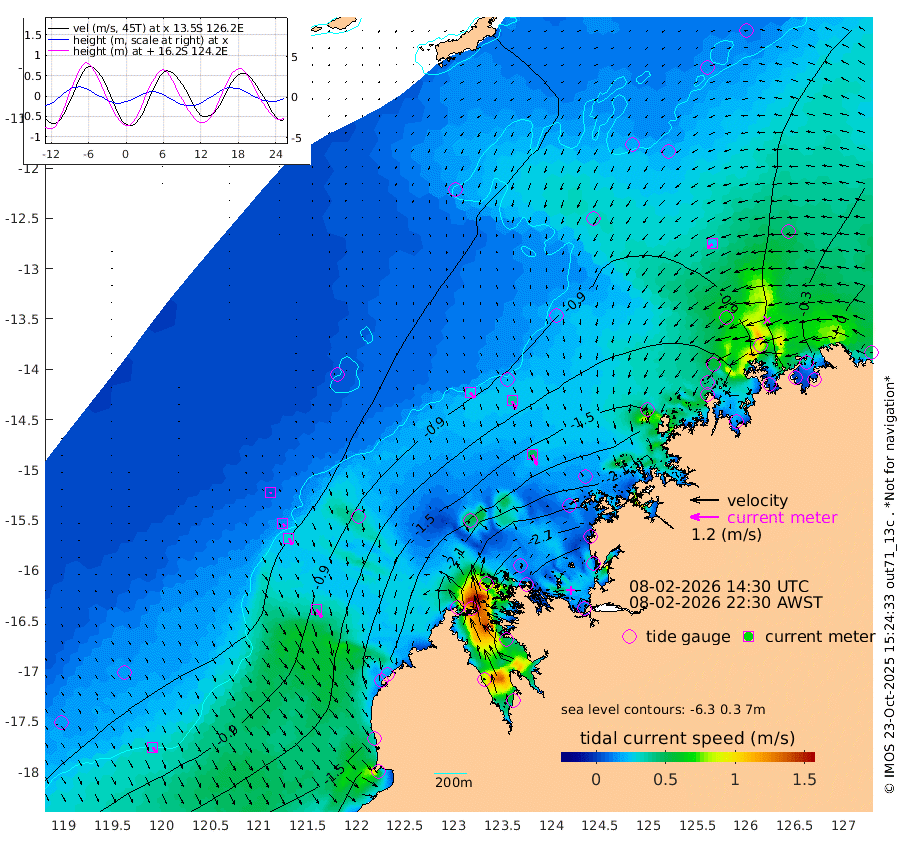 28cm/s 139T +10cm/s rms + 1cm/s 1T. NWSBRW 205m 27cm/s 150T +11cm/s rms + 6cm/s -110T. NWSROW 199m 48cm/s 154T +5cm/s rms + 2cm/s 65T. CAM050 58m 38cm/s 156T +12cm/s rms + 5cm/s 92T. CAM100 99m 7cm/s 160T +7cm/s rms + 1cm/s -85T. KIM400 396m 14cm/s 148T +9cm/s rms + 5cm/s -119T. KIM200 208m 29cm/s 153T +11cm/s rms + 5cm/s -147T. KIM100 99m 39cm/s 146T +8cm/s rms + 3cm/s -103T. KIM050 59m 25cm/s -126T +4cm/s rms + 2cm/s 23T. TIMORS88 91m -102cm Imperieuse Reef -49cm Mermaid Reef -139cm Broome -96cm Cape Baskerville -143cm Red Bluff -89cm Cape Boileau -42cm Scott Reef (WA) -64cm Ashmore Reef -232cm Karrakatta Bay -247cm Sunday Island -276cm Valentine Island -248cm Derby -269cm Port Usborne -228cm Bedford Islands -264cm Yampi Sound (Koolan Island) -264cm Macleay Island -149cm Adele Island 3cm Browse Island -343cm Shale Island -319cm Lizard Island -202cm Hall Point -189cm Degerando Island -173cm White Island -60cm Skua No. 4 Well -64cm Jabiru -106cm Maret Island -106cm Baudin Island -95cm Cape Voltaire (Krait Bay) -68cm Dillon Shoal -37cm Laminaria -122cm Port Warrender -63cm Troughton Island -79cm Cassini Island -64cm West Holothuria Reef Offshore -65cm Jar Island -93cm Lynher Bank -85cm Heywood Shoal -56cm Pee Shoal -34cm Van Cloon Shoal -14cm Carronade Island -19cm Guy Point -6cm Napier Broome Bay 36cm Lesueur Island