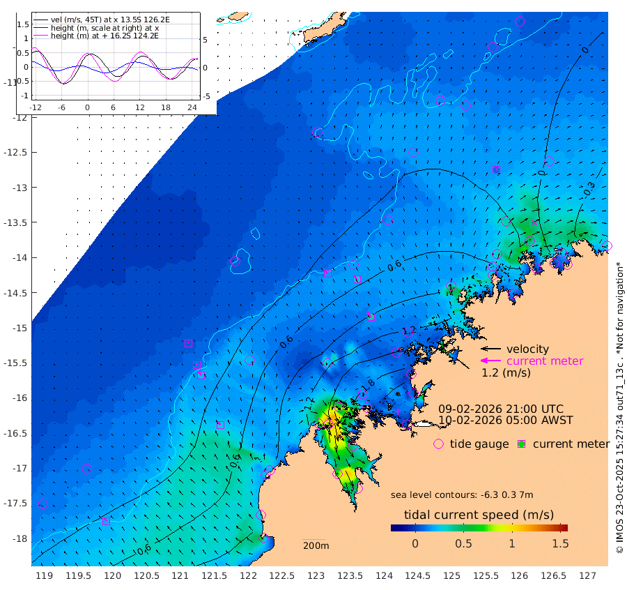 16cm/s -47T +10cm/s rms + 1cm/s 1T. NWSBRW 205m 20cm/s -34T +11cm/s rms + 6cm/s -110T. NWSROW 199m 36cm/s -35T +5cm/s rms + 2cm/s 65T. CAM050 58m 28cm/s -33T +12cm/s rms + 5cm/s 92T. CAM100 99m 5cm/s -28T +7cm/s rms + 1cm/s -85T. KIM400 396m 11cm/s -40T +9cm/s rms + 5cm/s -119T. KIM200 208m 22cm/s -37T +11cm/s rms + 5cm/s -147T. KIM100 99m 27cm/s -40T +8cm/s rms + 3cm/s -103T. KIM050 59m 9cm/s 36T +4cm/s rms + 2cm/s 23T. TIMORS88 91m 45cm Imperieuse Reef 4cm Mermaid Reef 66cm Broome 34cm Cape Baskerville 84cm Red Bluff 34cm Cape Boileau 0cm Scott Reef (WA) 8cm Ashmore Reef 136cm Karrakatta Bay 138cm Sunday Island 184cm Valentine Island 151cm Derby 166cm Port Usborne 121cm Bedford Islands 155cm Yampi Sound (Koolan Island) 157cm Macleay Island 71cm Adele Island -20cm Browse Island 214cm Shale Island 231cm Lizard Island 121cm Hall Point 95cm Degerando Island 94cm White Island 4cm Skua No. 4 Well -8cm Jabiru 37cm Maret Island 32cm Baudin Island 25cm Cape Voltaire (Krait Bay) 0cm Dillon Shoal -15cm Laminaria 43cm Port Warrender -12cm Troughton Island 8cm Cassini Island 0cm West Holothuria Reef Offshore 0cm Jar Island 33cm Lynher Bank 17cm Heywood Shoal -4cm Pee Shoal -23cm Van Cloon Shoal -40cm Carronade Island -41cm Guy Point -45cm Napier Broome Bay -96cm Lesueur Island
