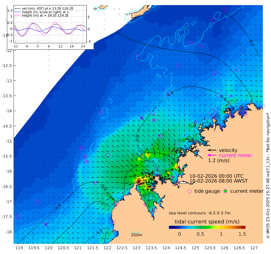 8cm/s -53T +10cm/s rms + 1cm/s 1T. NWSBRW 205m 9cm/s -68T +11cm/s rms + 6cm/s -110T. NWSROW 199m 34cm/s -37T +5cm/s rms + 2cm/s 65T. CAM050 58m 24cm/s -46T +12cm/s rms + 5cm/s 92T. CAM100 99m 4cm/s -88T +7cm/s rms + 1cm/s -85T. KIM400 396m 11cm/s -80T +9cm/s rms + 5cm/s -119T. KIM200 208m 18cm/s -73T +11cm/s rms + 5cm/s -147T. KIM100 99m 28cm/s -104T +8cm/s rms + 3cm/s -103T. KIM050 59m 11cm/s 89T +4cm/s rms + 2cm/s 23T. TIMORS88 91m -37cm Imperieuse Reef -77cm Mermaid Reef -177cm Broome -125cm Cape Baskerville -125cm Red Bluff -129cm Cape Boileau -66cm Scott Reef (WA) -77cm Ashmore Reef -70cm Karrakatta Bay -38cm Sunday Island 150cm Valentine Island 198cm Derby 99cm Port Usborne -93cm Bedford Islands -143cm Yampi Sound (Koolan Island) -122cm Macleay Island -110cm Adele Island -113cm Browse Island -146cm Shale Island -147cm Lizard Island -124cm Hall Point -153cm Degerando Island -160cm White Island -76cm Skua No. 4 Well -38cm Jabiru -146cm Maret Island -140cm Baudin Island -149cm Cape Voltaire (Krait Bay) -47cm Dillon Shoal -43cm Laminaria -155cm Port Warrender -107cm Troughton Island -140cm Cassini Island -106cm West Holothuria Reef Offshore -117cm Jar Island -96cm Lynher Bank -118cm Heywood Shoal -61cm Pee Shoal -69cm Van Cloon Shoal -102cm Carronade Island -97cm Guy Point -109cm Napier Broome Bay -72cm Lesueur Island