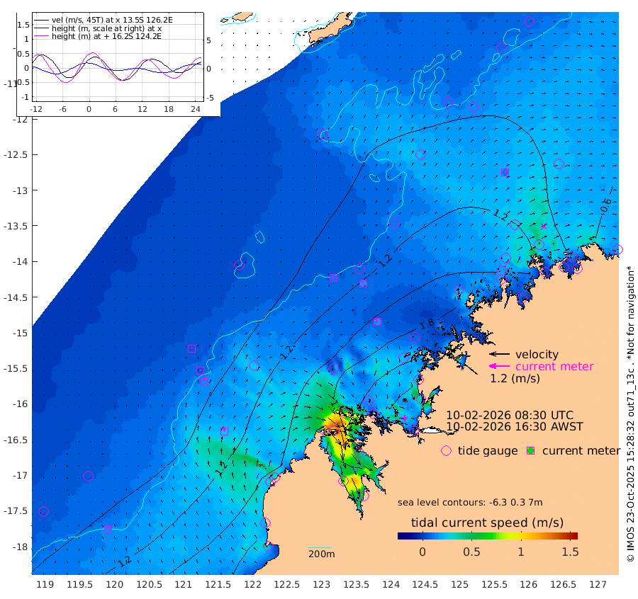 11cm/s -33T +10cm/s rms + 1cm/s 1T. NWSBRW 205m 14cm/s -20T +11cm/s rms + 6cm/s -110T. NWSROW 199m 18cm/s -18T +5cm/s rms + 2cm/s 65T. CAM050 58m 15cm/s -4T +12cm/s rms + 5cm/s 92T. CAM100 99m 4cm/s 10T +7cm/s rms + 1cm/s -85T. KIM400 396m 6cm/s 2T +9cm/s rms + 5cm/s -119T. KIM200 208m 15cm/s -5T +11cm/s rms + 5cm/s -147T. KIM100 99m 24cm/s -4T +8cm/s rms + 3cm/s -103T. KIM050 59m 11cm/s 32T +4cm/s rms + 2cm/s 23T. TIMORS88 91m 92cm Imperieuse Reef 75cm Mermaid Reef 159cm Broome 114cm Cape Baskerville 135cm Red Bluff 110cm Cape Boileau 65cm Scott Reef (WA) 91cm Ashmore Reef 181cm Karrakatta Bay 180cm Sunday Island 138cm Valentine Island 109cm Derby 151cm Port Usborne 175cm Bedford Islands 230cm Yampi Sound (Koolan Island) 222cm Macleay Island 147cm Adele Island 53cm Browse Island 280cm Shale Island 273cm Lizard Island 204cm Hall Point 181cm Degerando Island 185cm White Island 85cm Skua No. 4 Well 87cm Jabiru 137cm Maret Island 141cm Baudin Island 134cm Cape Voltaire (Krait Bay) 84cm Dillon Shoal 64cm Laminaria 156cm Port Warrender 117cm Troughton Island 124cm Cassini Island 109cm West Holothuria Reef Offshore 119cm Jar Island 108cm Lynher Bank 111cm Heywood Shoal 80cm Pee Shoal 80cm Van Cloon Shoal 86cm Carronade Island 87cm Guy Point 85cm Napier Broome Bay 62cm Lesueur Island