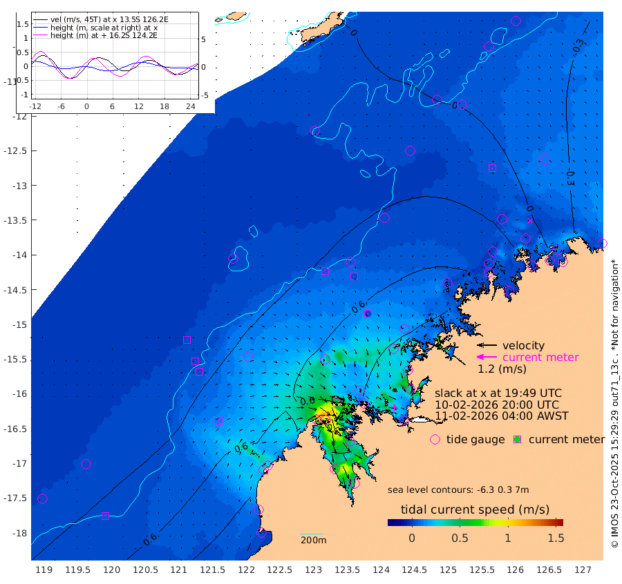 6cm/s -50T +10cm/s rms + 1cm/s 1T. NWSBRW 205m 5cm/s -7T +11cm/s rms + 6cm/s -110T. NWSROW 199m 4cm/s -120T +5cm/s rms + 2cm/s 65T. CAM050 58m 2cm/s -54T +12cm/s rms + 5cm/s 92T. CAM100 99m 2cm/s 38T +7cm/s rms + 1cm/s -85T. KIM400 396m 2cm/s 45T +9cm/s rms + 5cm/s -119T. KIM200 208m 4cm/s 14T +11cm/s rms + 5cm/s -147T. KIM100 99m 11cm/s 16T +8cm/s rms + 3cm/s -103T. KIM050 59m 6cm/s -86T +4cm/s rms + 2cm/s 23T. TIMORS88 91m 15cm Imperieuse Reef 16cm Mermaid Reef 93cm Broome 49cm Cape Baskerville 83cm Red Bluff 50cm Cape Boileau 7cm Scott Reef (WA) 9cm Ashmore Reef 74cm Karrakatta Bay 52cm Sunday Island -13cm Valentine Island -55cm Derby 4cm Port Usborne 72cm Bedford Islands 118cm Yampi Sound (Koolan Island) 102cm Macleay Island 56cm Adele Island 26cm Browse Island 152cm Shale Island 171cm Lizard Island 80cm Hall Point 88cm Degerando Island 96cm White Island 7cm Skua No. 4 Well -29cm Jabiru 53cm Maret Island 47cm Baudin Island 48cm Cape Voltaire (Krait Bay) -15cm Dillon Shoal -16cm Laminaria 51cm Port Warrender -6cm Troughton Island 30cm Cassini Island 10cm West Holothuria Reef Offshore 14cm Jar Island 35cm Lynher Bank 34cm Heywood Shoal -12cm Pee Shoal -23cm Van Cloon Shoal -18cm Carronade Island -23cm Guy Point -21cm Napier Broome Bay -77cm Lesueur Island