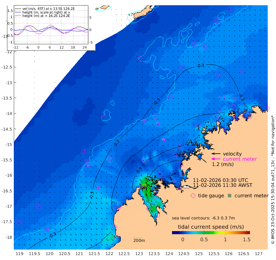 15cm/s 133T +10cm/s rms + 1cm/s 1T. NWSBRW 205m 14cm/s 151T +11cm/s rms + 6cm/s -110T. NWSROW 199m 27cm/s 140T +5cm/s rms + 2cm/s 65T. CAM050 58m 21cm/s 142T +12cm/s rms + 5cm/s 92T. CAM100 99m 3cm/s 145T +7cm/s rms + 1cm/s -85T. KIM400 396m 8cm/s 132T +9cm/s rms + 5cm/s -119T. KIM200 208m 18cm/s 141T +11cm/s rms + 5cm/s -147T. KIM100 99m 21cm/s 131T +8cm/s rms + 3cm/s -103T. KIM050 59m 11cm/s 123T +4cm/s rms + 2cm/s 23T. TIMORS88 91m -37cm Imperieuse Reef -2cm Mermaid Reef -38cm Broome -10cm Cape Baskerville -28cm Red Bluff -19cm Cape Boileau -1cm Scott Reef (WA) -12cm Ashmore Reef -83cm Karrakatta Bay -86cm Sunday Island -119cm Valentine Island -122cm Derby -125cm Port Usborne -58cm Bedford Islands -102cm Yampi Sound (Koolan Island) -108cm Macleay Island -46cm Adele Island -2cm Browse Island -142cm Shale Island -167cm Lizard Island -87cm Hall Point -60cm Degerando Island -69cm White Island -6cm Skua No. 4 Well -2cm Jabiru -29cm Maret Island -26cm Baudin Island -29cm Cape Voltaire (Krait Bay) -11cm Dillon Shoal 14cm Laminaria -41cm Port Warrender -19cm Troughton Island -16cm Cassini Island -16cm West Holothuria Reef Offshore -28cm Jar Island -22cm Lynher Bank -8cm Heywood Shoal -3cm Pee Shoal -7cm Van Cloon Shoal -9cm Carronade Island -4cm Guy Point -9cm Napier Broome Bay 13cm Lesueur Island