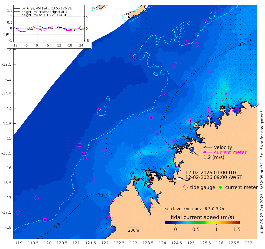 1cm/s 27T +10cm/s rms + 1cm/s 1T. NWSBRW 205m 1cm/s -132T +11cm/s rms + 6cm/s -110T. NWSROW 199m 5cm/s -13T +5cm/s rms + 2cm/s 65T. CAM050 58m 3cm/s -45T +12cm/s rms + 5cm/s 92T. CAM100 99m 1cm/s 155T +7cm/s rms + 1cm/s -85T. KIM400 396m 1cm/s -103T +9cm/s rms + 5cm/s -119T. KIM200 208m 2cm/s -107T +11cm/s rms + 5cm/s -147T. KIM100 99m 6cm/s -132T +8cm/s rms + 3cm/s -103T. KIM050 59m 12cm/s 99T +4cm/s rms + 2cm/s 23T. TIMORS88 91m -24cm Imperieuse Reef -22cm Mermaid Reef -54cm Broome -35cm Cape Baskerville -27cm Red Bluff -43cm Cape Boileau -16cm Scott Reef (WA) -28cm Ashmore Reef -23cm Karrakatta Bay -7cm Sunday Island 67cm Valentine Island 69cm Derby 36cm Port Usborne -21cm Bedford Islands -48cm Yampi Sound (Koolan Island) -7cm Macleay Island -19cm Adele Island -35cm Browse Island -54cm Shale Island -53cm Lizard Island 32cm Hall Point -52cm Degerando Island -54cm White Island -23cm Skua No. 4 Well 3cm Jabiru -47cm Maret Island -55cm Baudin Island -60cm Cape Voltaire (Krait Bay) -18cm Dillon Shoal -5cm Laminaria -63cm Port Warrender -58cm Troughton Island -56cm Cassini Island -43cm West Holothuria Reef Offshore -69cm Jar Island -30cm Lynher Bank -38cm Heywood Shoal -18cm Pee Shoal -44cm Van Cloon Shoal -67cm Carronade Island -62cm Guy Point -73cm Napier Broome Bay -85cm Lesueur Island