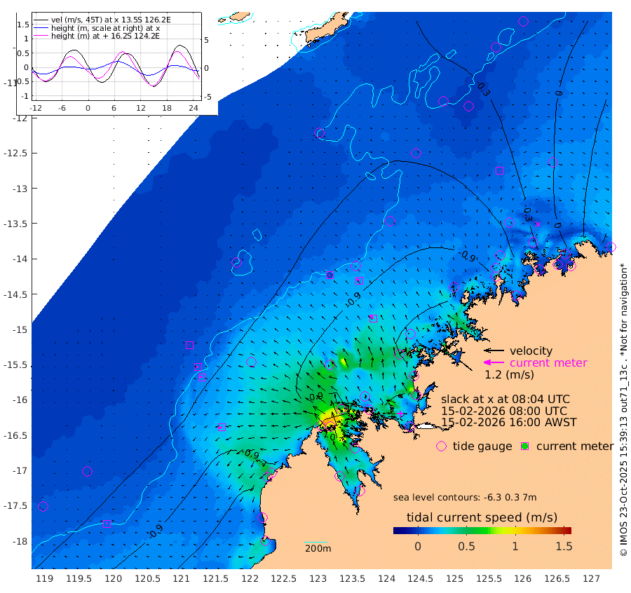 4cm/s -96T +10cm/s rms + 1cm/s 1T. NWSBRW 205m 7cm/s -57T +11cm/s rms + 6cm/s -110T. NWSROW 199m 27cm/s -37T +5cm/s rms + 2cm/s 65T. CAM050 58m 18cm/s -46T +12cm/s rms + 5cm/s 92T. CAM100 99m 4cm/s -88T +7cm/s rms + 1cm/s -85T. KIM400 396m 9cm/s -82T +9cm/s rms + 5cm/s -119T. KIM200 208m 15cm/s -77T +11cm/s rms + 5cm/s -147T. KIM100 99m 21cm/s -106T +8cm/s rms + 3cm/s -103T. KIM050 59m 5cm/s 86T +4cm/s rms + 2cm/s 23T. TIMORS88 91m -12cm Imperieuse Reef -44cm Mermaid Reef -140cm Broome -102cm Cape Baskerville -112cm Red Bluff -98cm Cape Boileau -42cm Scott Reef (WA) -44cm Ashmore Reef -92cm Karrakatta Bay -62cm Sunday Island 43cm Valentine Island 93cm Derby 24cm Port Usborne -99cm Bedford Islands -127cm Yampi Sound (Koolan Island) -190cm Macleay Island -117cm Adele Island -89cm Browse Island -139cm Shale Island -99cm Lizard Island -229cm Hall Point -121cm Degerando Island -121cm White Island -50cm Skua No. 4 Well -34cm Jabiru -109cm Maret Island -99cm Baudin Island -84cm Cape Voltaire (Krait Bay) -26cm Dillon Shoal -9cm Laminaria -87cm Port Warrender -38cm Troughton Island -86cm Cassini Island -56cm West Holothuria Reef Offshore -33cm Jar Island -58cm Lynher Bank -69cm Heywood Shoal -31cm Pee Shoal -3cm Van Cloon Shoal -3cm Carronade Island -3cm Guy Point 0cm Napier Broome Bay 71cm Lesueur Island