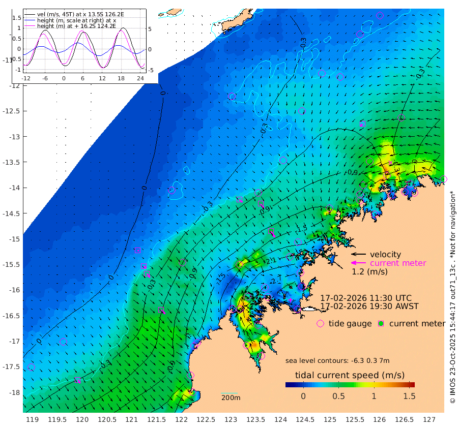 33cm/s 131T +10cm/s rms + 1cm/s 1T. NWSBRW 205m 34cm/s 146T +11cm/s rms + 6cm/s -110T. NWSROW 199m 60cm/s 146T +5cm/s rms + 2cm/s 65T. CAM050 58m 47cm/s 146T +12cm/s rms + 5cm/s 92T. CAM100 99m 10cm/s 138T +7cm/s rms + 1cm/s -85T. KIM400 396m 21cm/s 138T +9cm/s rms + 5cm/s -119T. KIM200 208m 41cm/s 144T +11cm/s rms + 5cm/s -147T. KIM100 99m 47cm/s 136T +8cm/s rms + 3cm/s -103T. KIM050 59m 27cm/s -134T +4cm/s rms + 2cm/s 23T. TIMORS88 91m -87cm Imperieuse Reef -4cm Mermaid Reef -112cm Broome -73cm Cape Baskerville -156cm Red Bluff -66cm Cape Boileau 1cm Scott Reef (WA) -31cm Ashmore Reef -231cm Karrakatta Bay -229cm Sunday Island -285cm Valentine Island -252cm Derby -266cm Port Usborne -218cm Bedford Islands -246cm Yampi Sound (Koolan Island) -246cm Macleay Island -127cm Adele Island 30cm Browse Island -335cm Shale Island -274cm Lizard Island -230cm Hall Point -179cm Degerando Island -140cm White Island -20cm Skua No. 4 Well -10cm Jabiru -80cm Maret Island -79cm Baudin Island -65cm Cape Voltaire (Krait Bay) -32cm Dillon Shoal 31cm Laminaria -99cm Port Warrender -27cm Troughton Island -58cm Cassini Island -29cm West Holothuria Reef Offshore -32cm Jar Island -49cm Lynher Bank -39cm Heywood Shoal -20cm Pee Shoal -1cm Van Cloon Shoal 26cm Carronade Island 31cm Guy Point 36cm Napier Broome Bay 88cm Lesueur Island