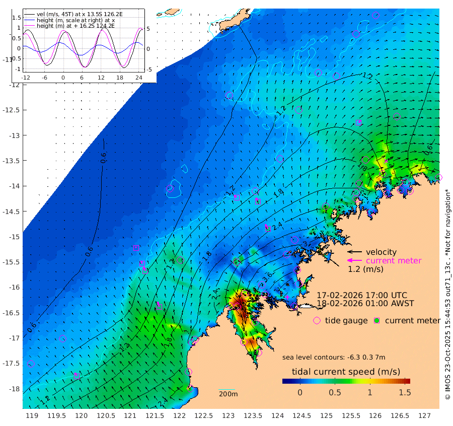 24cm/s -44T +10cm/s rms + 1cm/s 1T. NWSBRW 205m 33cm/s -29T +11cm/s rms + 6cm/s -110T. NWSROW 199m 43cm/s -28T +5cm/s rms + 2cm/s 65T. CAM050 58m 36cm/s -23T +12cm/s rms + 5cm/s 92T. CAM100 99m 9cm/s -28T +7cm/s rms + 1cm/s -85T. KIM400 396m 19cm/s -30T +9cm/s rms + 5cm/s -119T. KIM200 208m 36cm/s -25T +11cm/s rms + 5cm/s -147T. KIM100 99m 44cm/s -19T +8cm/s rms + 3cm/s -103T. KIM050 59m 26cm/s 33T +4cm/s rms + 2cm/s 23T. TIMORS88 91m 141cm Imperieuse Reef 71cm Mermaid Reef 232cm Broome 172cm Cape Baskerville 258cm Red Bluff 179cm Cape Boileau 66cm Scott Reef (WA) 109cm Ashmore Reef 318cm Karrakatta Bay 297cm Sunday Island 300cm Valentine Island 220cm Derby 274cm Port Usborne 305cm Bedford Islands 358cm Yampi Sound (Koolan Island) 370cm Macleay Island 227cm Adele Island 49cm Browse Island 452cm Shale Island 420cm Lizard Island 338cm Hall Point 291cm Degerando Island 253cm White Island 107cm Skua No. 4 Well 77cm Jabiru 197cm Maret Island 183cm Baudin Island 180cm Cape Voltaire (Krait Bay) 103cm Dillon Shoal 28cm Laminaria 227cm Port Warrender 136cm Troughton Island 173cm Cassini Island 126cm West Holothuria Reef Offshore 131cm Jar Island 128cm Lynher Bank 146cm Heywood Shoal 105cm Pee Shoal 85cm Van Cloon Shoal 69cm Carronade Island 67cm Guy Point 73cm Napier Broome Bay -12cm Lesueur Island