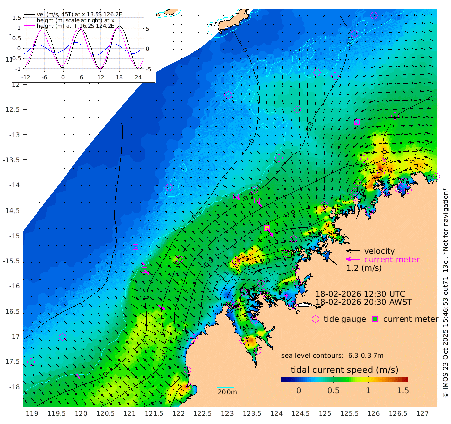 39cm/s 128T +10cm/s rms + 1cm/s 1T. NWSBRW 205m 44cm/s 143T +11cm/s rms + 6cm/s -110T. NWSROW 199m 88cm/s 144T +5cm/s rms + 2cm/s 65T. CAM050 58m 66cm/s 144T +12cm/s rms + 5cm/s 92T. CAM100 99m 14cm/s 131T +7cm/s rms + 1cm/s -85T. KIM400 396m 29cm/s 131T +9cm/s rms + 5cm/s -119T. KIM200 208m 55cm/s 138T +11cm/s rms + 5cm/s -147T. KIM100 99m 63cm/s 125T +8cm/s rms + 3cm/s -103T. KIM050 59m 32cm/s -134T +4cm/s rms + 2cm/s 23T. TIMORS88 91m -92cm Imperieuse Reef 27cm Mermaid Reef -38cm Broome -18cm Cape Baskerville -106cm Red Bluff -10cm Cape Boileau 30cm Scott Reef (WA) -7cm Ashmore Reef -222cm Karrakatta Bay -231cm Sunday Island -386cm Valentine Island -379cm Derby -346cm Port Usborne -188cm Bedford Islands -210cm Yampi Sound (Koolan Island) -192cm Macleay Island -81cm Adele Island 87cm Browse Island -311cm Shale Island -255cm Lizard Island -169cm Hall Point -128cm Degerando Island -87cm White Island 8cm Skua No. 4 Well 3cm Jabiru -24cm Maret Island -31cm Baudin Island -16cm Cape Voltaire (Krait Bay) -23cm Dillon Shoal 47cm Laminaria -52cm Port Warrender -6cm Troughton Island -11cm Cassini Island 4cm West Holothuria Reef Offshore -12cm Jar Island -14cm Lynher Bank 7cm Heywood Shoal -1cm Pee Shoal 7cm Van Cloon Shoal 42cm Carronade Island 48cm Guy Point 54cm Napier Broome Bay 73cm Lesueur Island
