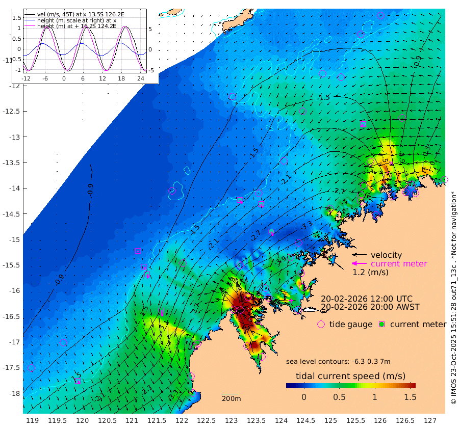 34cm/s 143T +10cm/s rms + 1cm/s 1T. NWSBRW 205m 30cm/s 156T +11cm/s rms + 6cm/s -110T. NWSROW 199m 36cm/s 163T +5cm/s rms + 2cm/s 65T. CAM050 58m 33cm/s 167T +12cm/s rms + 5cm/s 92T. CAM100 99m 9cm/s 173T +7cm/s rms + 1cm/s -85T. KIM400 396m 16cm/s 170T +9cm/s rms + 5cm/s -119T. KIM200 208m 34cm/s 172T +11cm/s rms + 5cm/s -147T. KIM100 99m 49cm/s 170T +8cm/s rms + 3cm/s -103T. KIM050 59m 30cm/s -132T +4cm/s rms + 2cm/s 23T. TIMORS88 91m -166cm Imperieuse Reef -110cm Mermaid Reef -328cm Broome -236cm Cape Baskerville -314cm Red Bluff -224cm Cape Boileau -99cm Scott Reef (WA) -143cm Ashmore Reef -387cm Karrakatta Bay -351cm Sunday Island -288cm Valentine Island -183cm Derby -293cm Port Usborne -398cm Bedford Islands -461cm Yampi Sound (Koolan Island) -475cm Macleay Island -294cm Adele Island -84cm Browse Island -578cm Shale Island -531cm Lizard Island -389cm Hall Point -378cm Degerando Island -333cm White Island -147cm Skua No. 4 Well -109cm Jabiru -264cm Maret Island -242cm Baudin Island -237cm Cape Voltaire (Krait Bay) -116cm Dillon Shoal -60cm Laminaria -268cm Port Warrender -158cm Troughton Island -223cm Cassini Island -151cm West Holothuria Reef Offshore -151cm Jar Island -181cm Lynher Bank -198cm Heywood Shoal -127cm Pee Shoal -79cm Van Cloon Shoal -60cm Carronade Island -59cm Guy Point -54cm Napier Broome Bay 56cm Lesueur Island