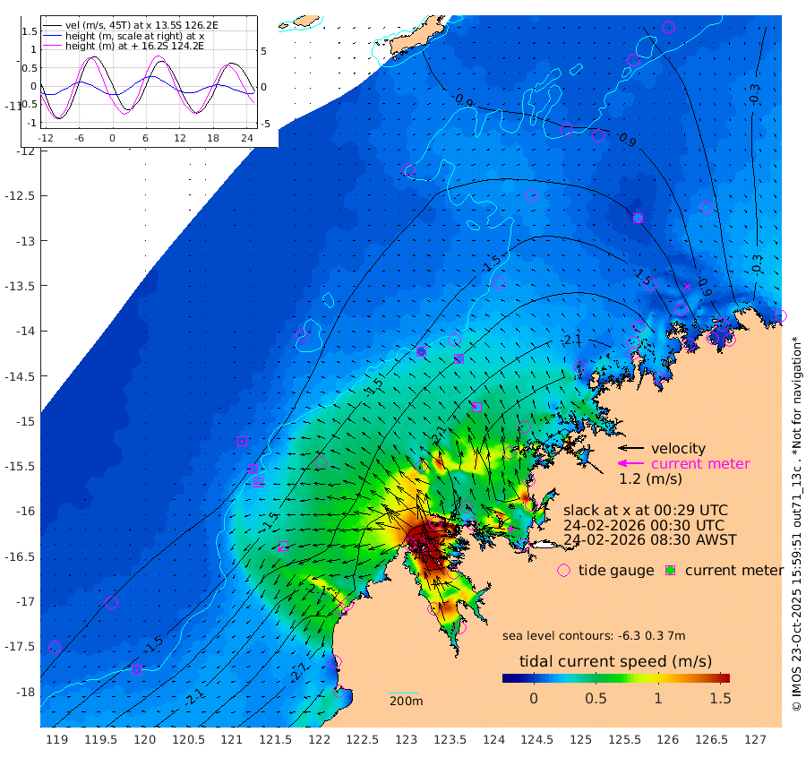 6cm/s 159T +10cm/s rms + 1cm/s 1T. NWSBRW 205m 8cm/s -148T +11cm/s rms + 6cm/s -110T. NWSROW 199m 21cm/s -45T +5cm/s rms + 2cm/s 65T. CAM050 58m 13cm/s -73T +12cm/s rms + 5cm/s 92T. CAM100 99m 6cm/s -118T +7cm/s rms + 1cm/s -85T. KIM400 396m 11cm/s -112T +9cm/s rms + 5cm/s -119T. KIM200 208m 18cm/s -117T +11cm/s rms + 5cm/s -147T. KIM100 99m 35cm/s -135T +8cm/s rms + 3cm/s -103T. KIM050 59m 13cm/s 114T +4cm/s rms + 2cm/s 23T. TIMORS88 91m -91cm Imperieuse Reef -115cm Mermaid Reef -301cm Broome -211cm Cape Baskerville -219cm Red Bluff -212cm Cape Boileau -102cm Scott Reef (WA) -115cm Ashmore Reef -209cm Karrakatta Bay -176cm Sunday Island 31cm Valentine Island 130cm Derby -19cm Port Usborne -260cm Bedford Islands -318cm Yampi Sound (Koolan Island) -312cm Macleay Island -217cm Adele Island -151cm Browse Island -359cm Shale Island -376cm Lizard Island -224cm Hall Point -293cm Degerando Island -286cm White Island -119cm Skua No. 4 Well -67cm Jabiru -238cm Maret Island -219cm Baudin Island -225cm Cape Voltaire (Krait Bay) -62cm Dillon Shoal -53cm Laminaria -246cm Port Warrender -145cm Troughton Island -201cm Cassini Island -142cm West Holothuria Reef Offshore -151cm Jar Island -172cm Lynher Bank -174cm Heywood Shoal -91cm Pee Shoal -76cm Van Cloon Shoal -101cm Carronade Island -96cm Guy Point -104cm Napier Broome Bay -24cm Lesueur Island