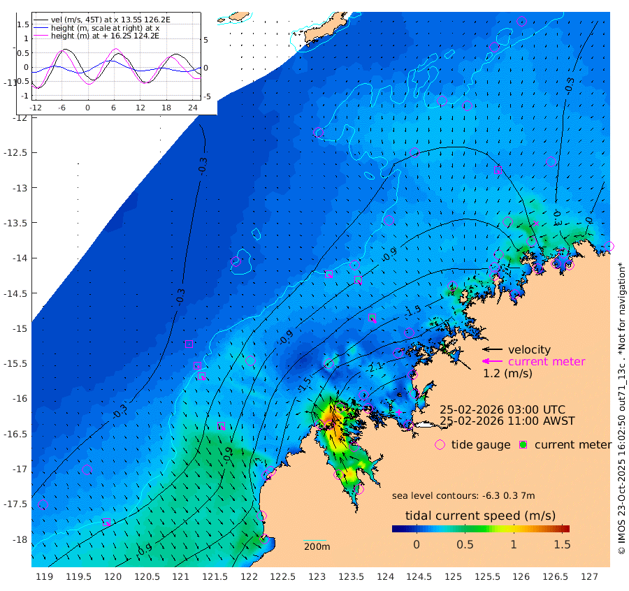 27cm/s 135T +10cm/s rms + 1cm/s 1T. NWSBRW 205m 24cm/s 151T +11cm/s rms + 6cm/s -110T. NWSROW 199m 40cm/s 145T +5cm/s rms + 2cm/s 65T. CAM050 58m 33cm/s 147T +12cm/s rms + 5cm/s 92T. CAM100 99m 6cm/s 152T +7cm/s rms + 1cm/s -85T. KIM400 396m 13cm/s 143T +9cm/s rms + 5cm/s -119T. KIM200 208m 29cm/s 149T +11cm/s rms + 5cm/s -147T. KIM100 99m 33cm/s 141T +8cm/s rms + 3cm/s -103T. KIM050 59m 14cm/s 155T +4cm/s rms + 2cm/s 23T. TIMORS88 91m -79cm Imperieuse Reef -20cm Mermaid Reef -104cm Broome -58cm Cape Baskerville -79cm Red Bluff -61cm Cape Boileau -19cm Scott Reef (WA) -37cm Ashmore Reef -178cm Karrakatta Bay -170cm Sunday Island -213cm Valentine Island -187cm Derby -218cm Port Usborne -168cm Bedford Islands -201cm Yampi Sound (Koolan Island) -213cm Macleay Island -104cm Adele Island -14cm Browse Island -274cm Shale Island -296cm Lizard Island -120cm Hall Point -142cm Degerando Island -126cm White Island -36cm Skua No. 4 Well -22cm Jabiru -82cm Maret Island -70cm Baudin Island -69cm Cape Voltaire (Krait Bay) -19cm Dillon Shoal 10cm Laminaria -82cm Port Warrender -44cm Troughton Island -54cm Cassini Island -30cm West Holothuria Reef Offshore -45cm Jar Island -61cm Lynher Bank -35cm Heywood Shoal -26cm Pee Shoal -10cm Van Cloon Shoal 0cm Carronade Island 6cm Guy Point 1cm Napier Broome Bay 39cm Lesueur Island